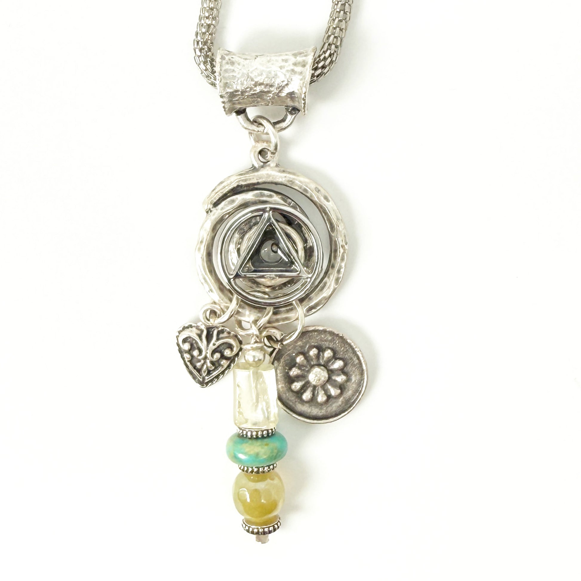 My One of a Kind Hand Painted Resin Sobriety Pendants are Unique, Handcrafted pieces of jewelry designed to symbolize and celebrate your journey in recovery. I incorporate many symbols in my work such as hearts. Hearts represent “My Heart is in Recovery” Each pendant comes with a 18” silver plated chain