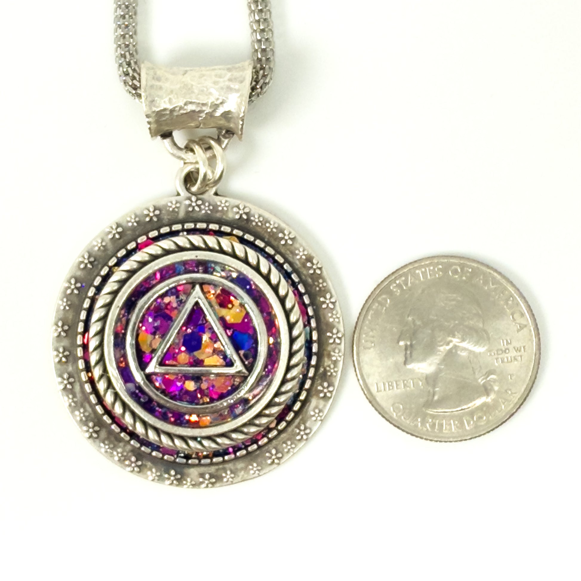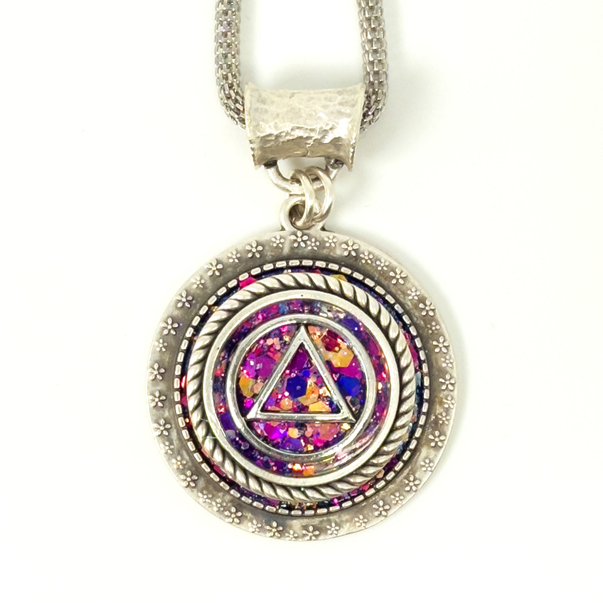 My One of a Kind Hand Painted Resin Sobriety Pendants are Unique, Handcrafted pieces of jewelry designed to symbolize and celebrate your journey in recovery. I incorporate many symbols in my work such as hearts. Hearts represent “My Heart is in Recovery” Each pendant comes with a 18” silver plated chain