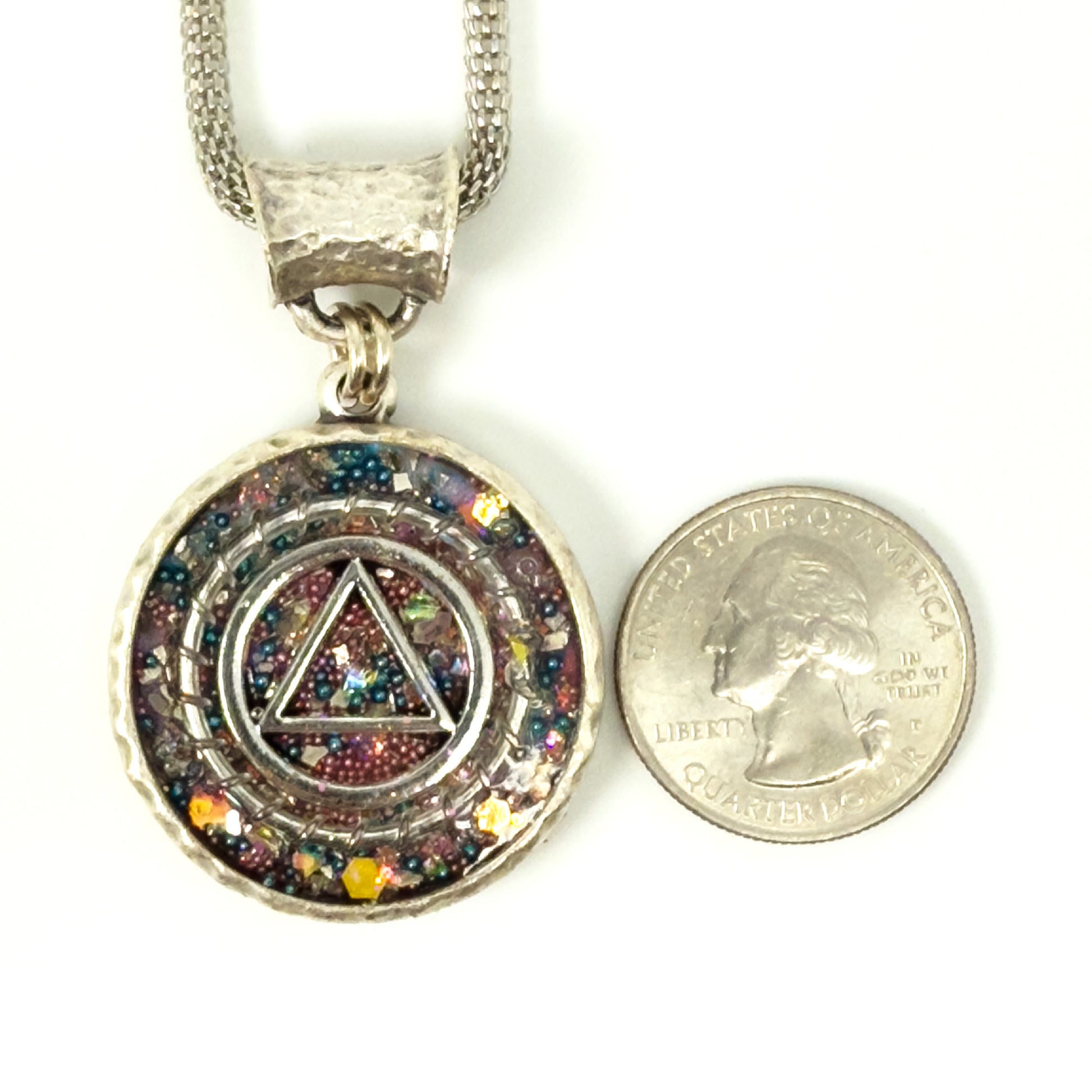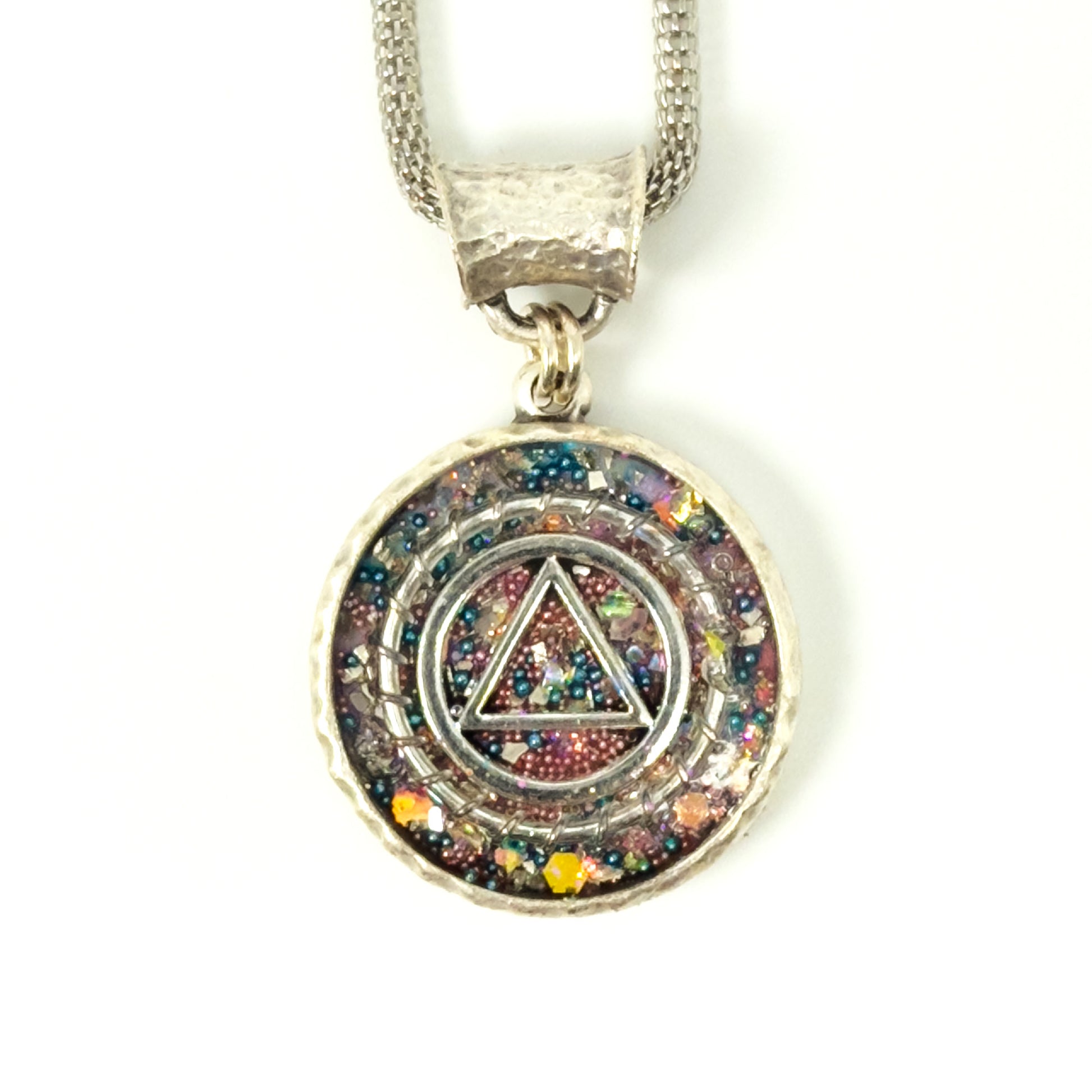 My One of a Kind Hand Painted Resin Sobriety Pendants are Unique, Handcrafted pieces of jewelry designed to symbolize and celebrate your journey in recovery. I incorporate many symbols in my work such as hearts. Hearts represent “My Heart is in Recovery” Each pendant comes with a 18” silver plated chain