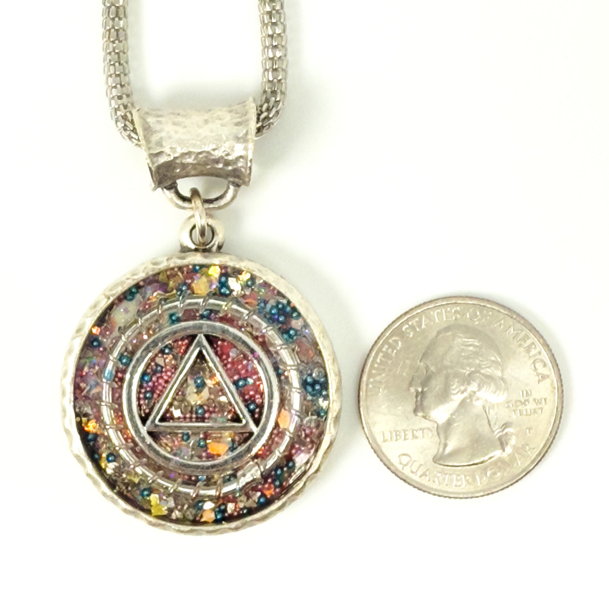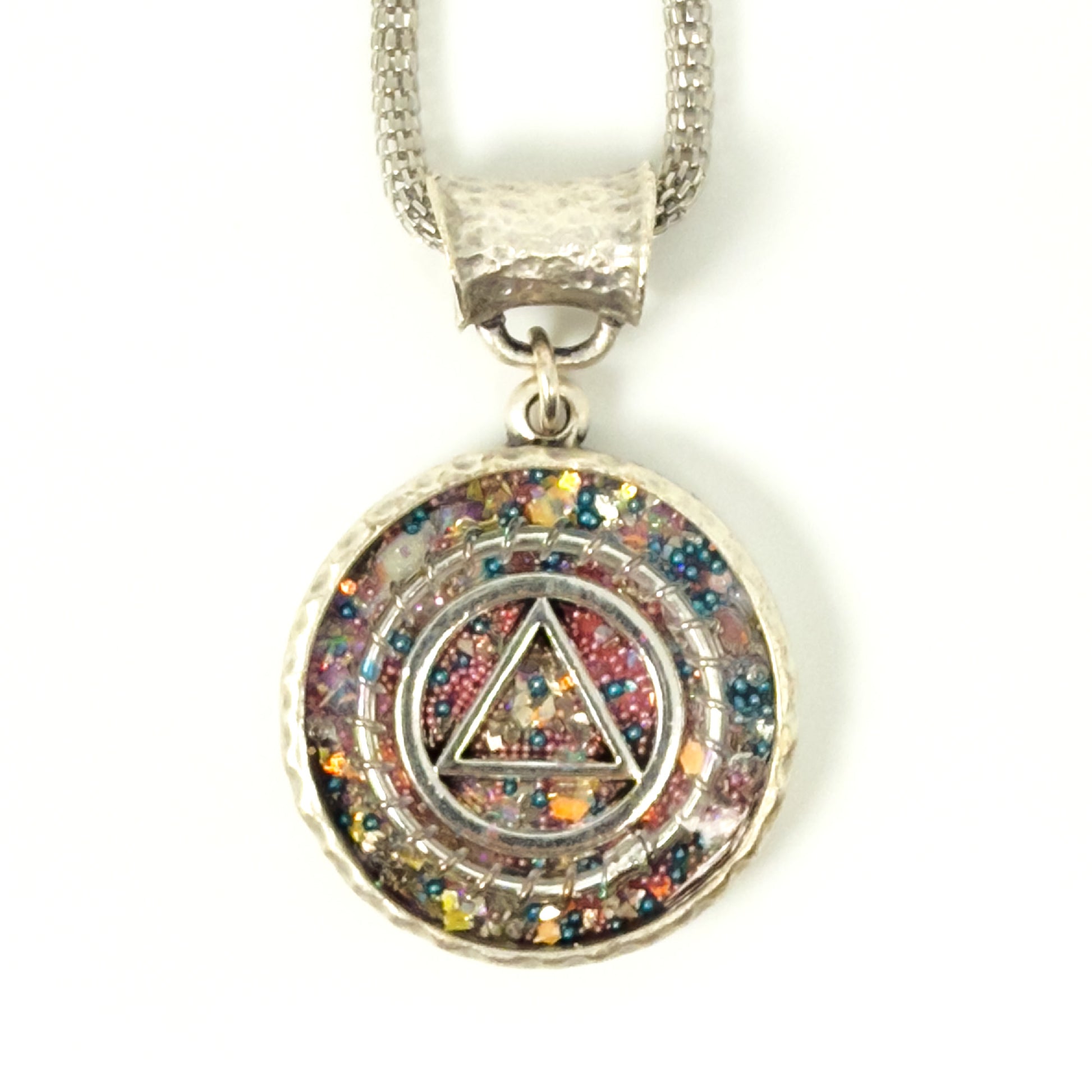 My One of a Kind Hand Painted Resin Sobriety Pendants are Unique, Handcrafted pieces of jewelry designed to symbolize and celebrate your journey in recovery. I incorporate many symbols in my work such as hearts. Hearts represent “My Heart is in Recovery” Each pendant comes with a 18” silver plated chain