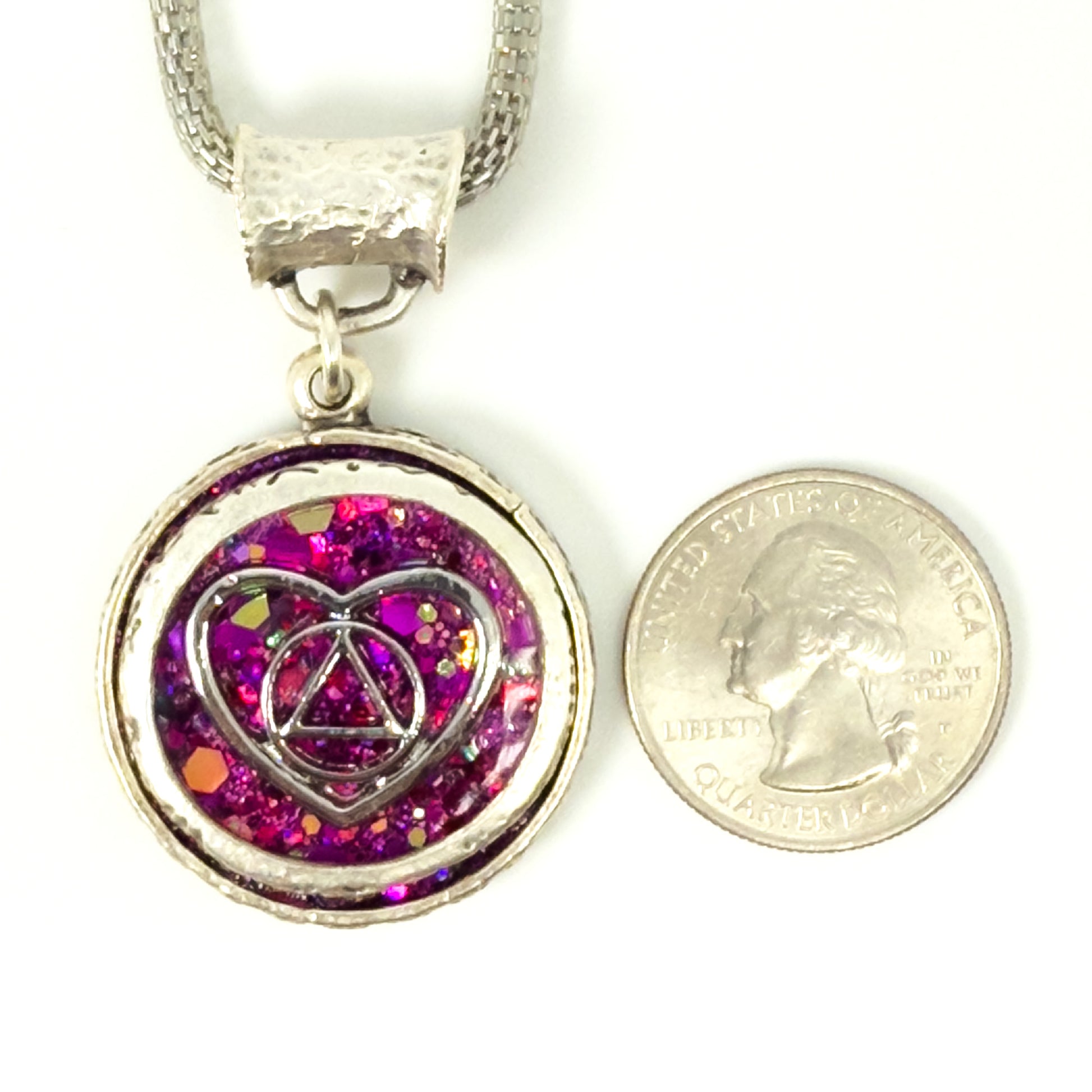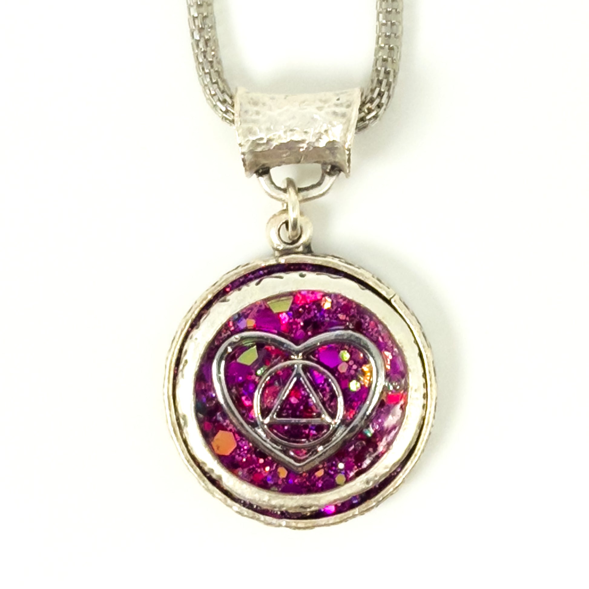 My One of a Kind Hand Painted Resin Sobriety Pendants are Unique, Handcrafted pieces of jewelry designed to symbolize and celebrate your journey in recovery. I incorporate many symbols in my work such as hearts. Hearts represent “My Heart is in Recovery” Each pendant comes with a 18” silver plated chain