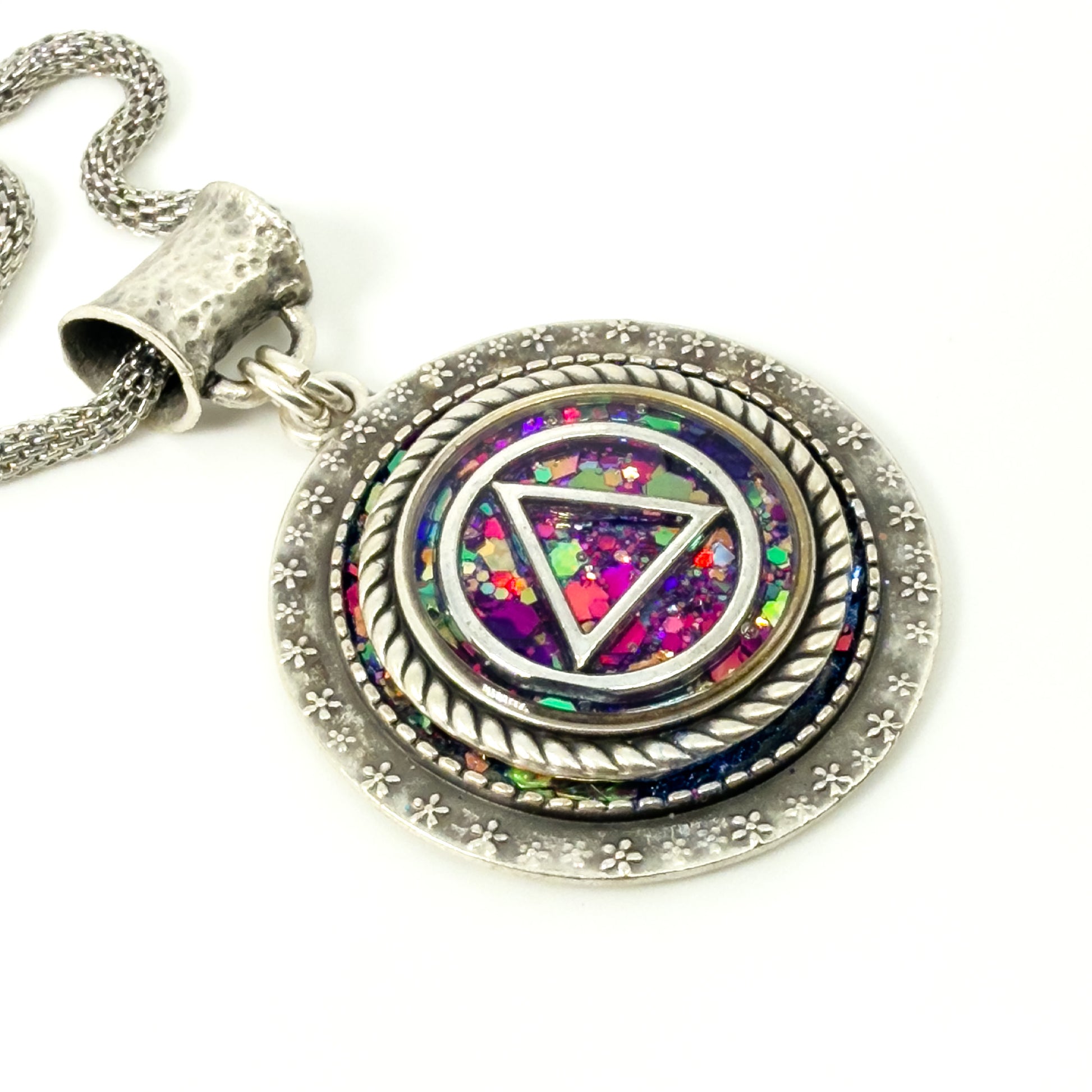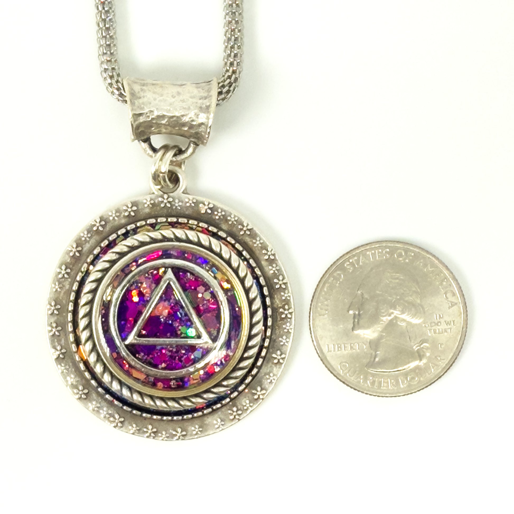 My One of a Kind Hand Painted Resin Sobriety Pendants are Unique, Handcrafted pieces of jewelry designed to symbolize and celebrate your journey in recovery. I incorporate many symbols in my work such as hearts. Hearts represent “My Heart is in Recovery” Each pendant comes with a 18” silver plated chain