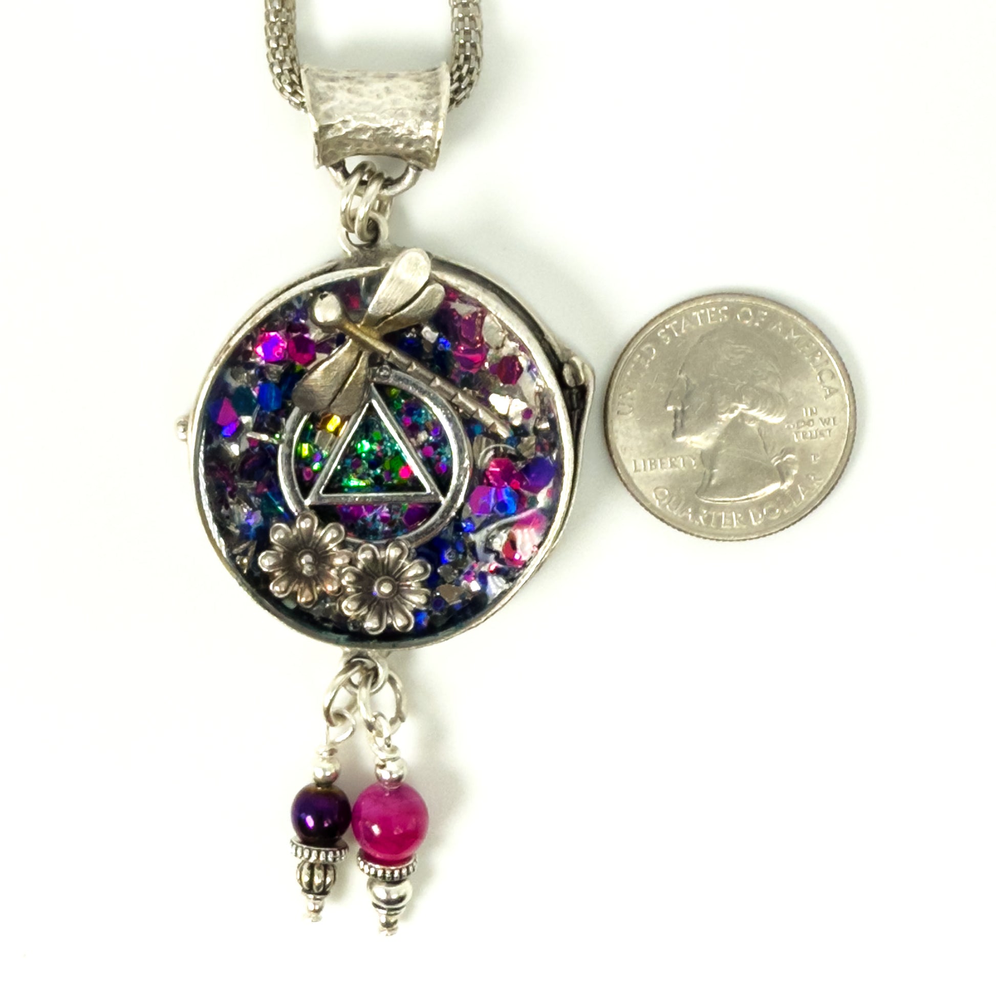 My One of a Kind Hand Painted Resin Sobriety Pendants are Unique, Handcrafted pieces of jewelry designed to symbolize and celebrate your journey in recovery. I incorporate many symbols in my work such as hearts. Hearts represent “My Heart is in Recovery” Each pendant comes with a 18” silver plated chain