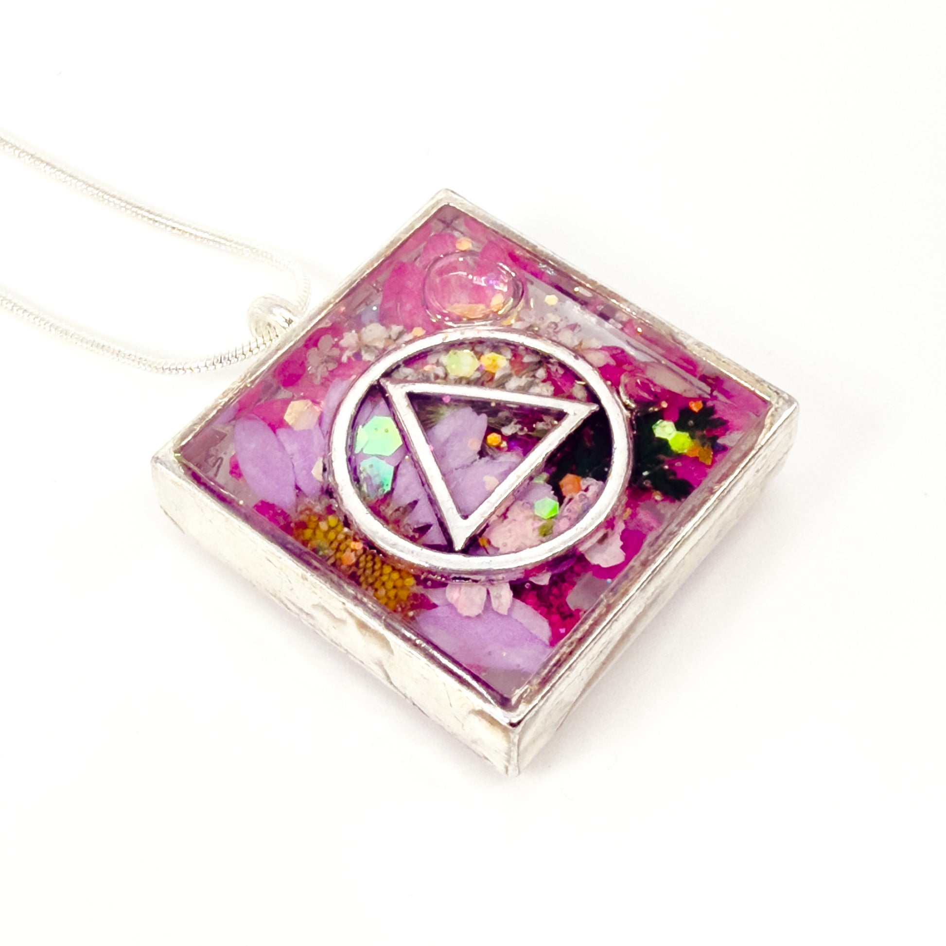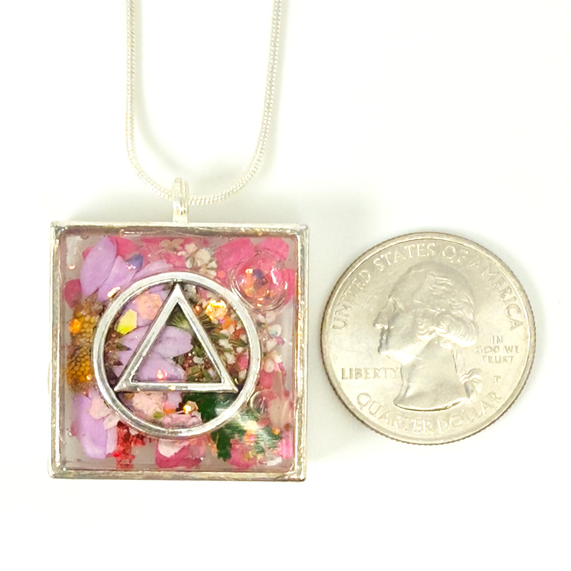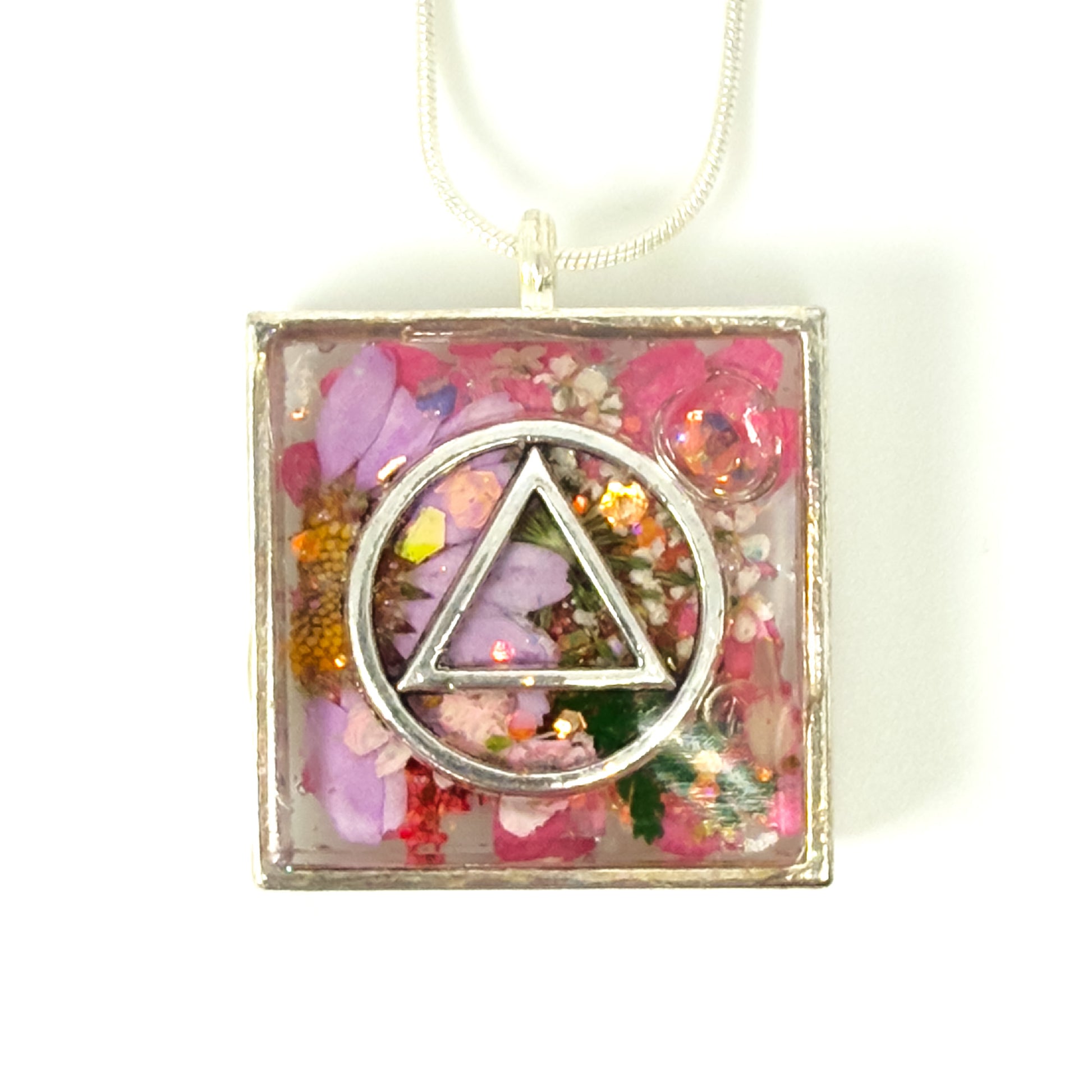 My One of a Kind Hand Painted Resin Sobriety Pendants are Unique, Handcrafted pieces of jewelry designed to symbolize and celebrate your journey in recovery. I incorporate many symbols in my work such as hearts. Hearts represent “My Heart is in Recovery” Each pendant comes with a 18” silver plated chain