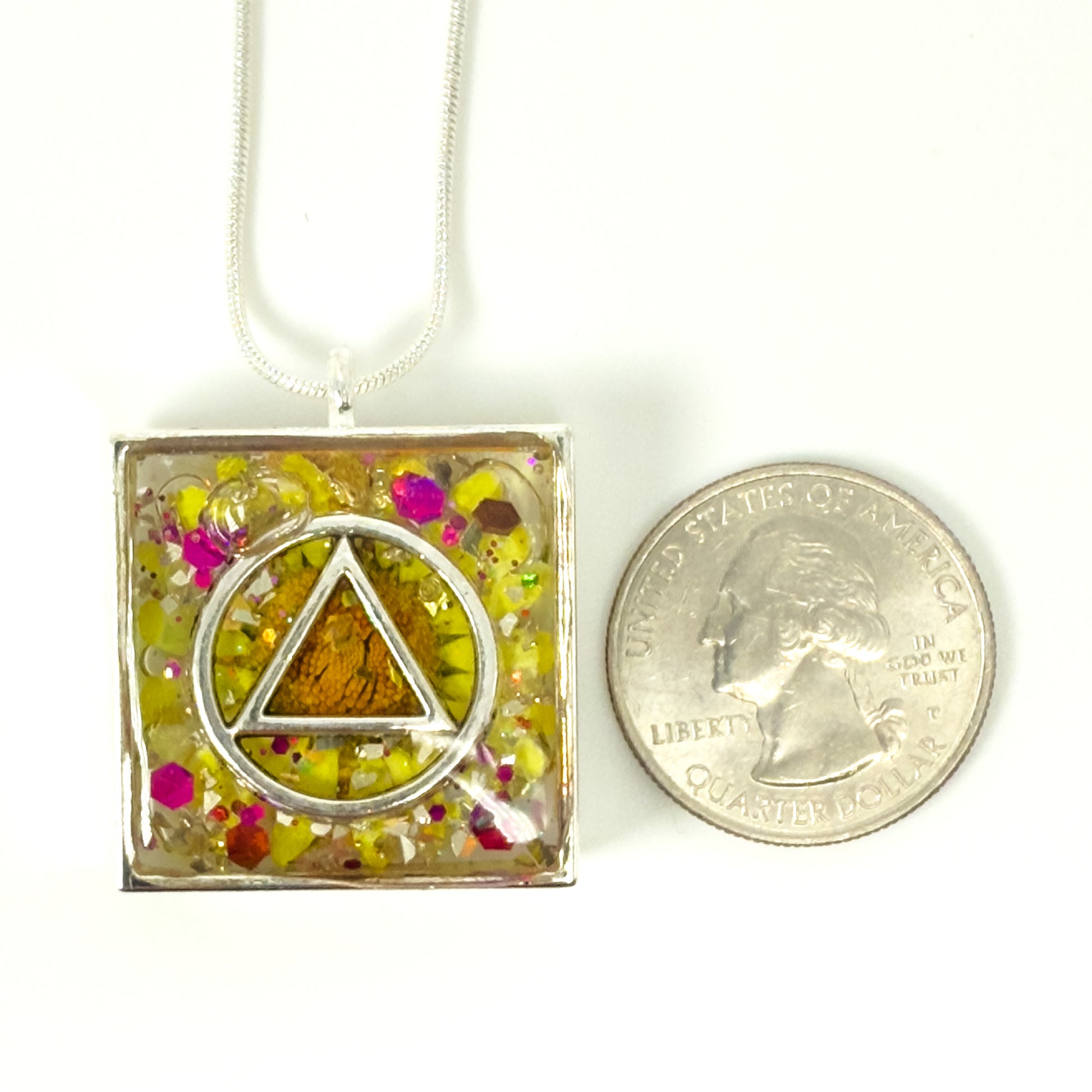 My One of a Kind Hand Painted Resin Sobriety Pendants are Unique, Handcrafted pieces of jewelry designed to symbolize and celebrate your journey in recovery. I incorporate many symbols in my work such as hearts. Hearts represent “My Heart is in Recovery” Each pendant comes with a 18” silver plated chain