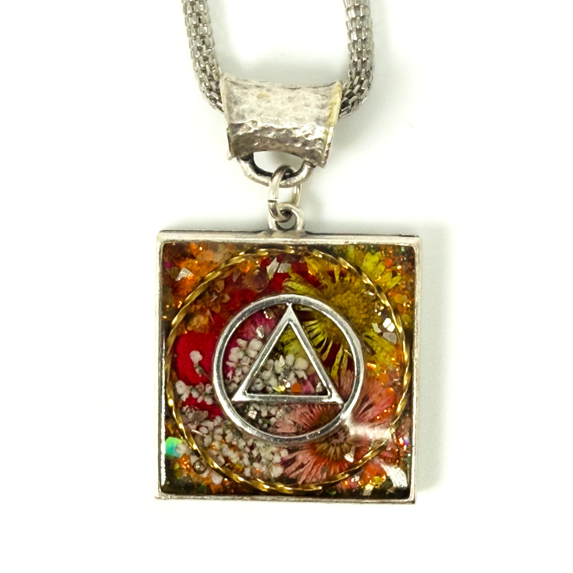 My One of a Kind Hand Painted Resin Sobriety Pendants are Unique, Handcrafted pieces of jewelry designed to symbolize and celebrate your journey in recovery. I incorporate many symbols in my work such as hearts. Hearts represent “My Heart is in Recovery” Each pendant comes with a 18” silver plated chain