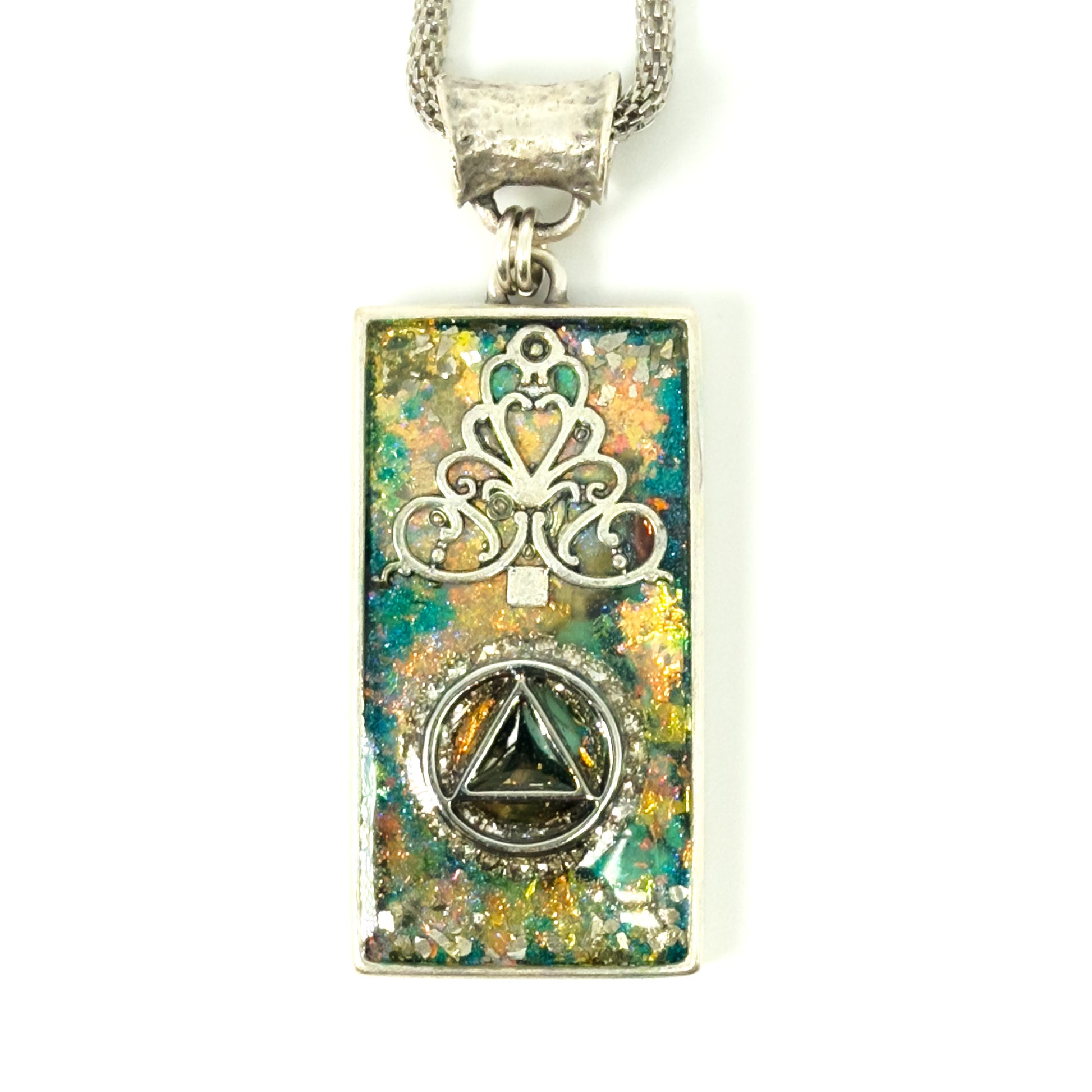 My One of a Kind Hand Painted Resin Sobriety Pendants are Unique, Handcrafted pieces of jewelry designed to symbolize and celebrate your journey in recovery. I incorporate many symbols in my work such as hearts. Hearts represent “My Heart is in Recovery” Each pendant comes with a 18” silver plated chain
