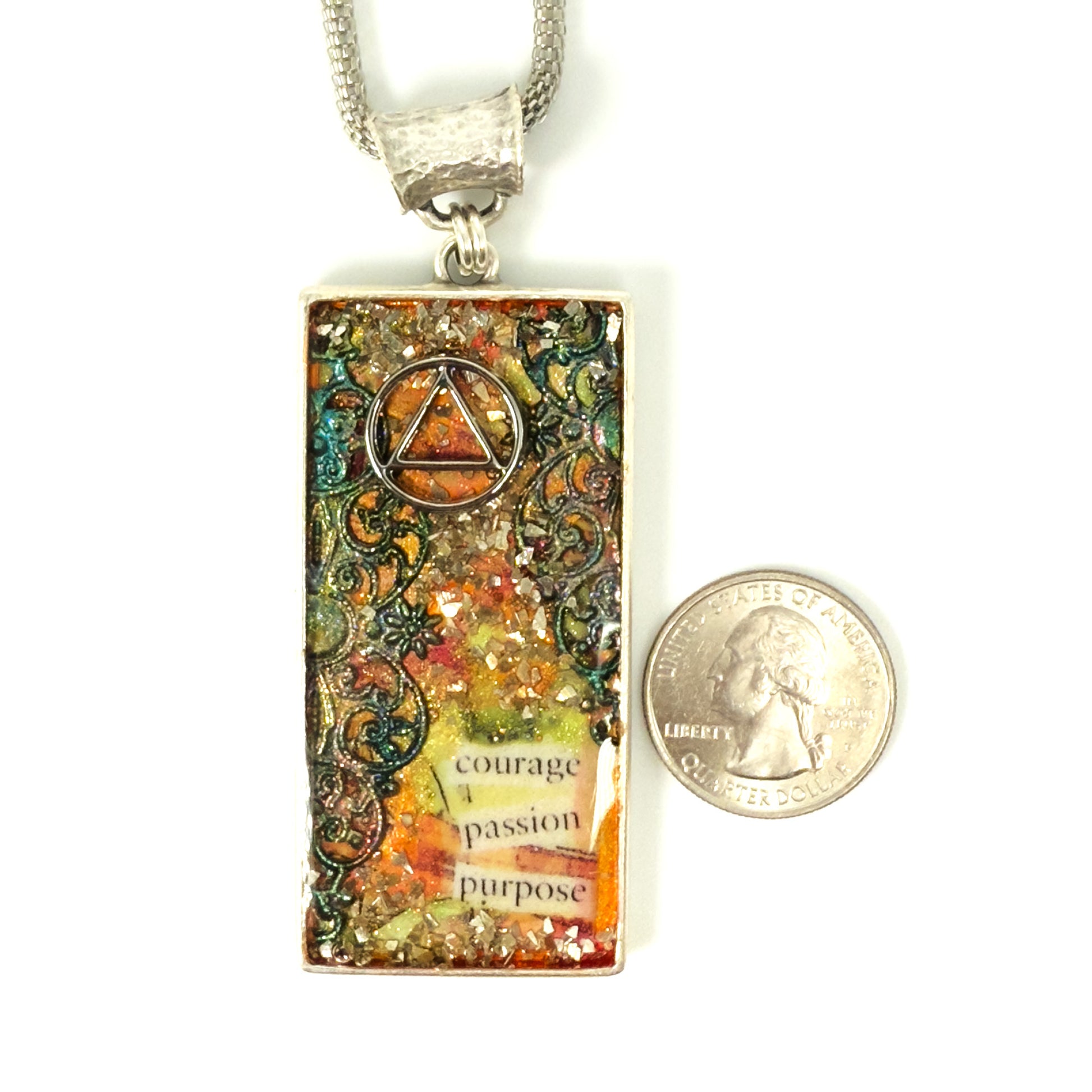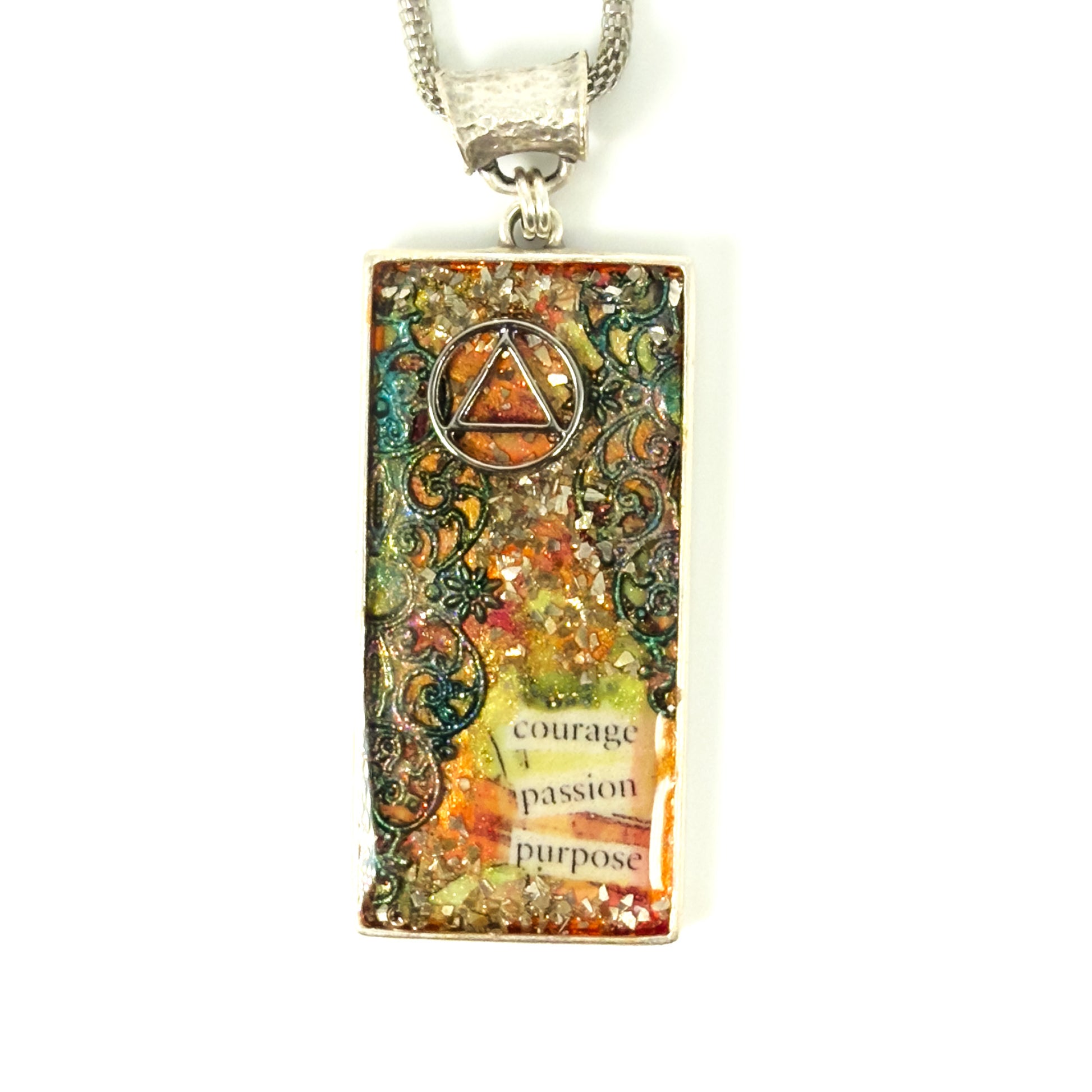 My One of a Kind Hand Painted Resin Sobriety Pendants are Unique, Handcrafted pieces of jewelry designed to symbolize and celebrate your journey in recovery. I incorporate many symbols in my work such as hearts. Hearts represent “My Heart is in Recovery” Each pendant comes with a 18” silver plated chain