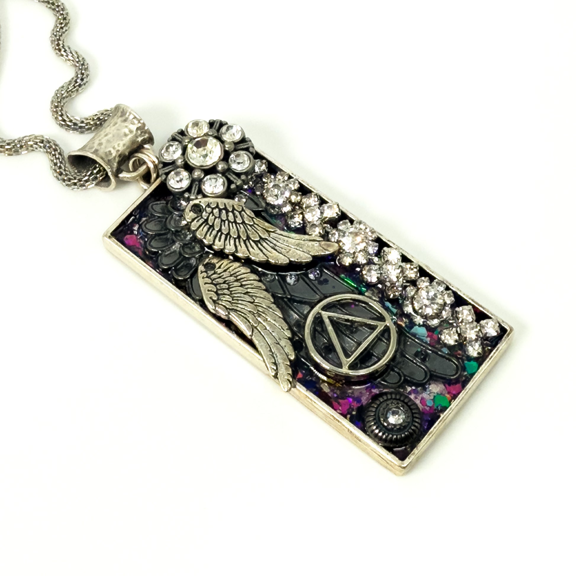My One of a Kind Hand Painted Resin Sobriety Pendants are Unique, Handcrafted pieces of jewelry designed to symbolize and celebrate your journey in recovery. I incorporate many symbols in my work such as hearts. Hearts represent “My Heart is in Recovery” Each pendant comes with a 18” silver plated chain
