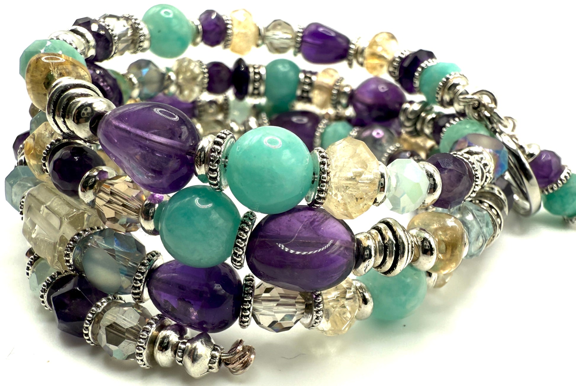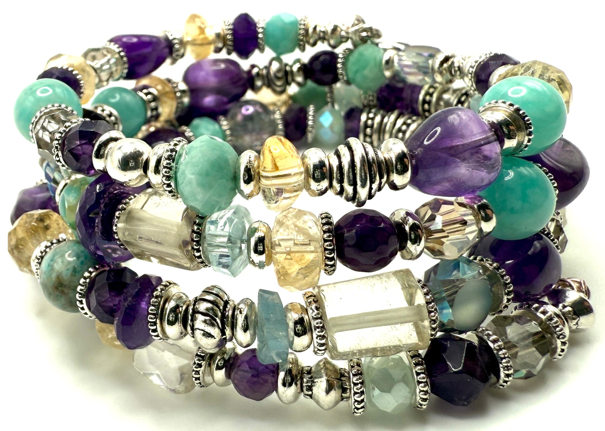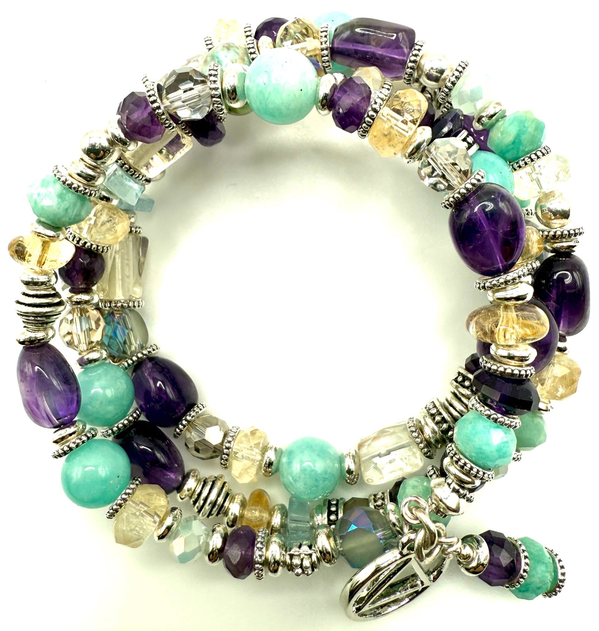 Gemstone wire wrap bracelets are designed by Michelle B. They offer a unique blend of beauty and creativity. Each piece is meticulously handcrafted, featuring an array of natural gemstones. Michelle B.’s attention to detail and artistic vision make her One of a Kind creations stand out as timeless, wearable art!