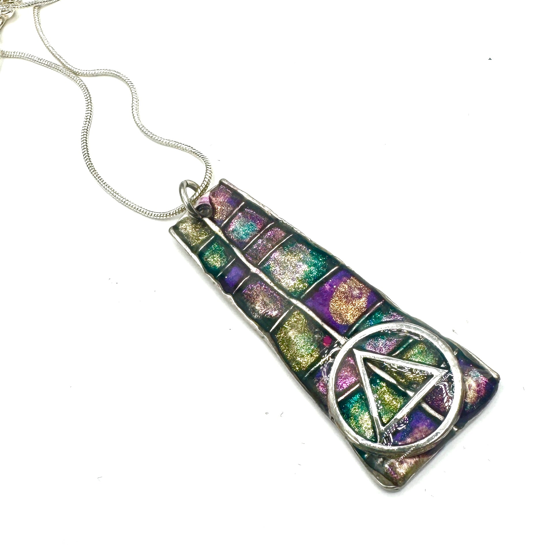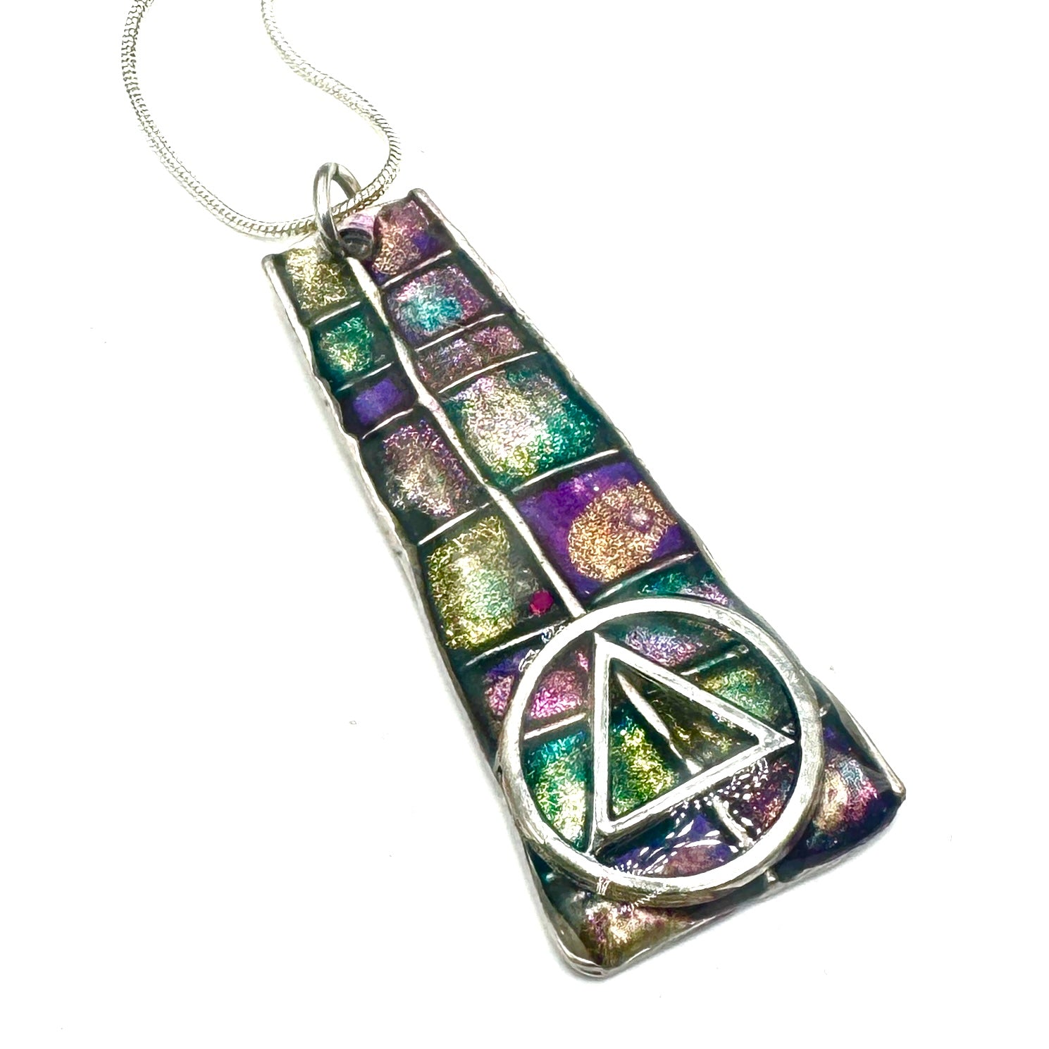 Elevate your style with unique hand-painted resin pendant necklaces! Each piece is a miniature work of art, perfect for expressing your journey in recovery. 18” silver plated chain. Your sure to love this one of a kind pendant necklace by Michelle b
