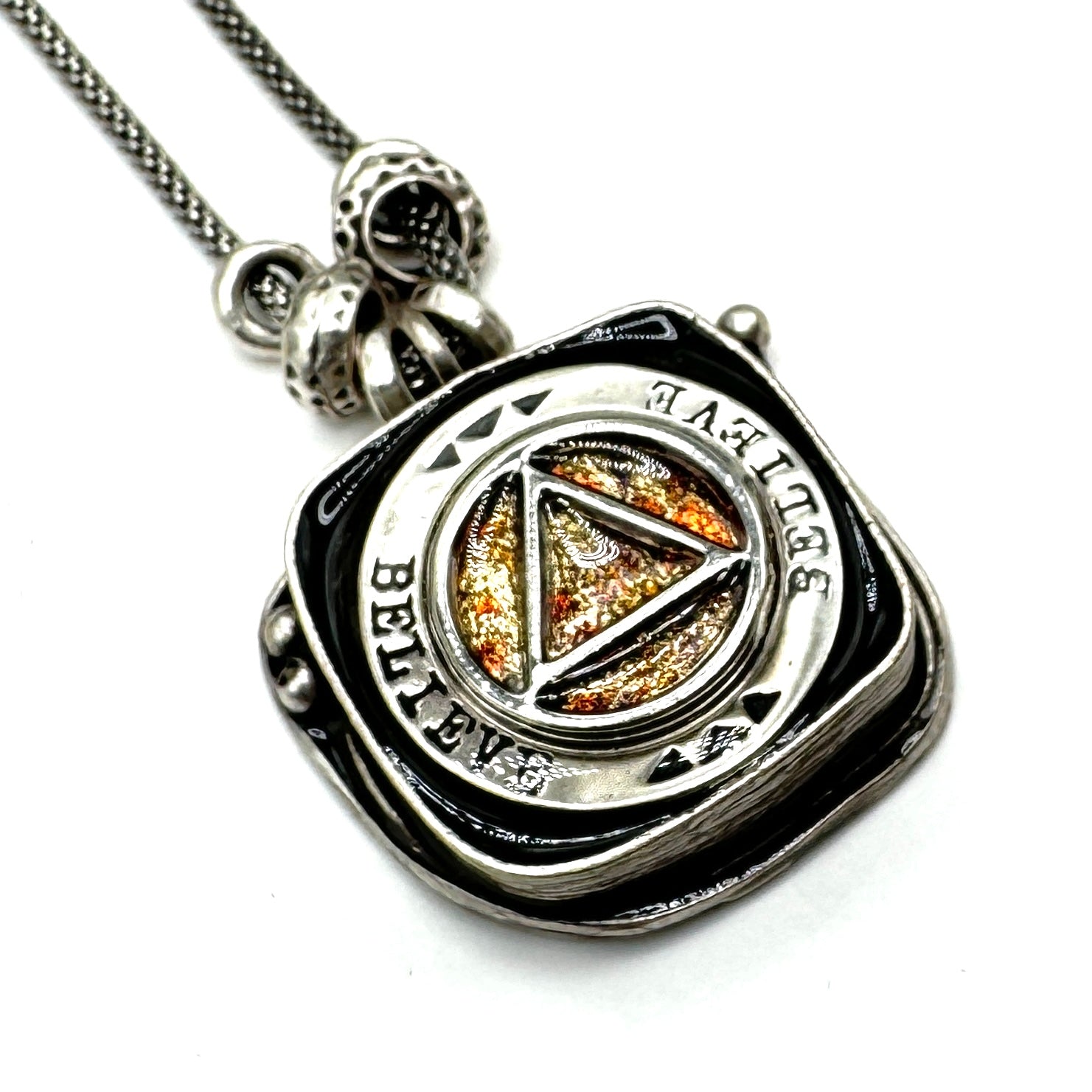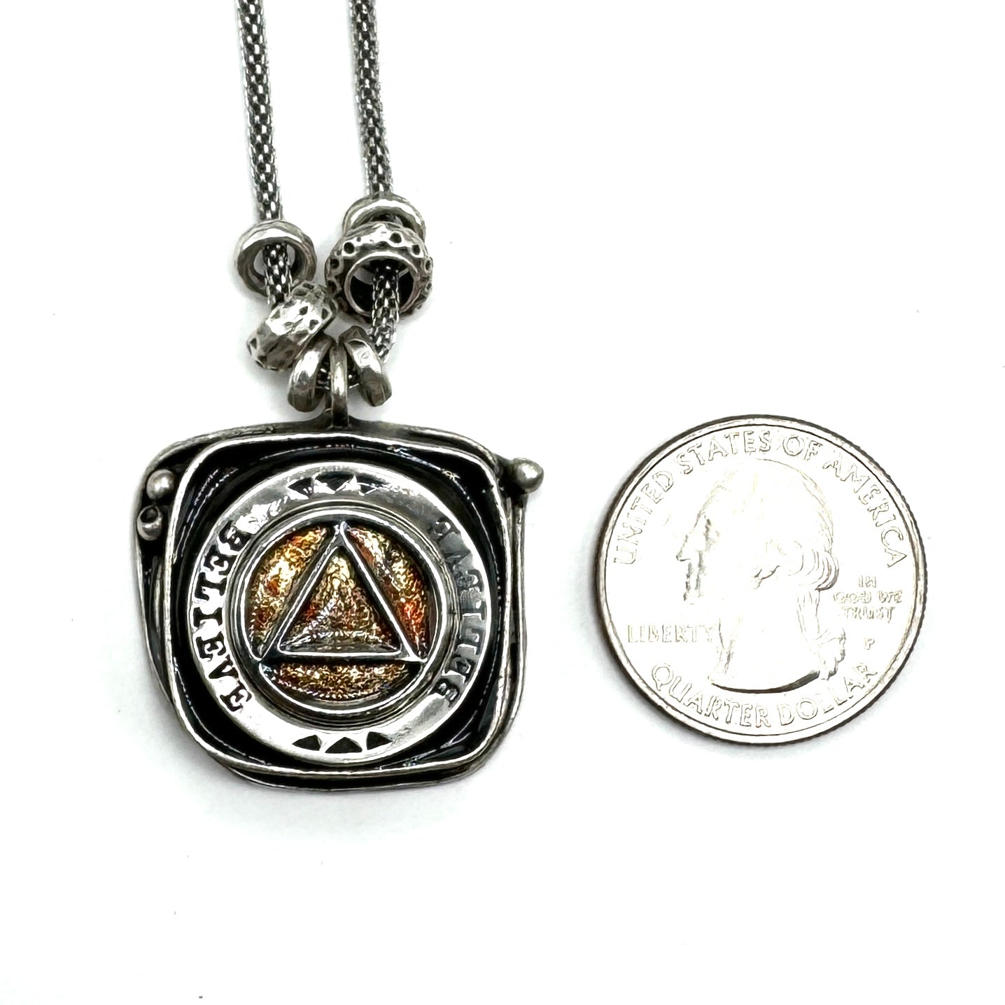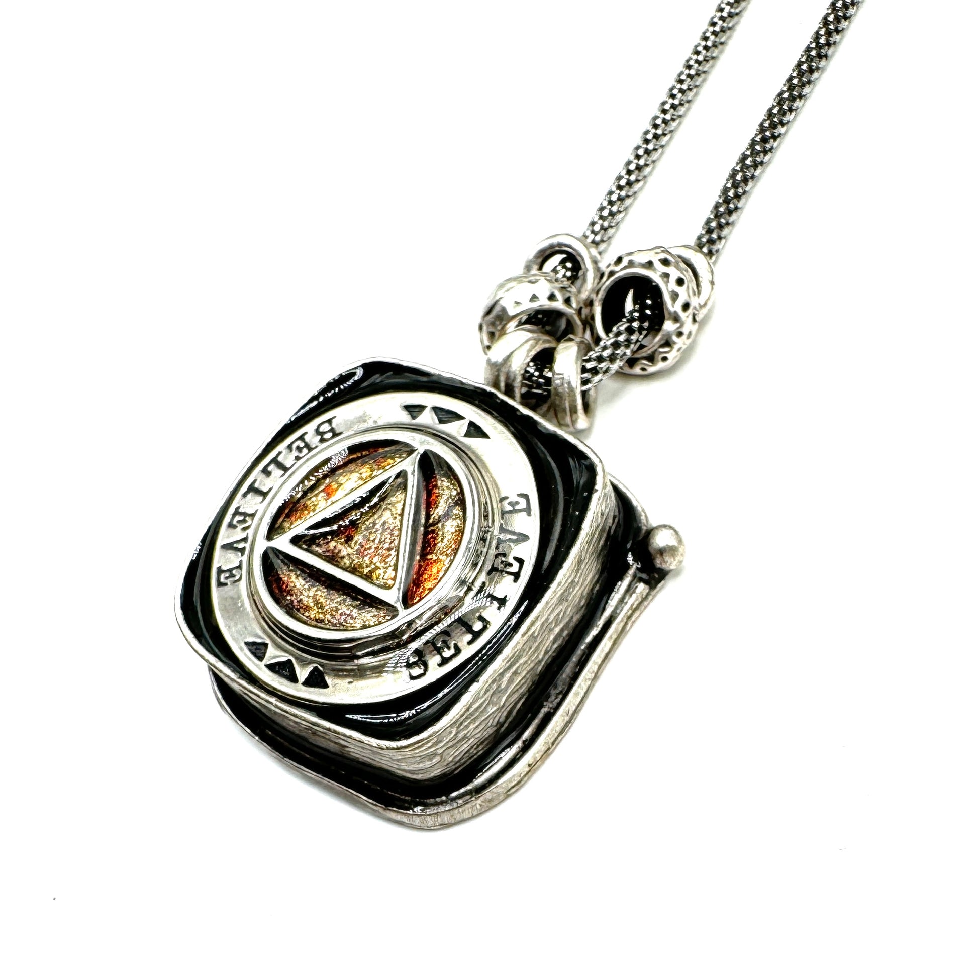 Celebrate the journey of sobriety with the Artful Recovery Sober Pendants by Michelle B. Each pendant is a unique, handcrafted piece of art designed to symbolize personal growth and the commitment to a life of recovery. Made with high-quality materials and infused with intention, these pendants feature inspiring symbols and meaningful designs that resonate with those on their path to recovery. Whether worn as a daily reminder or gifted to a loved one, each pendant serves as a beautiful testament to the courage and hope of embracing a sober life. Discover the art of recovery with Michelle B’s exclusive collection. 18” silver plated chain.
