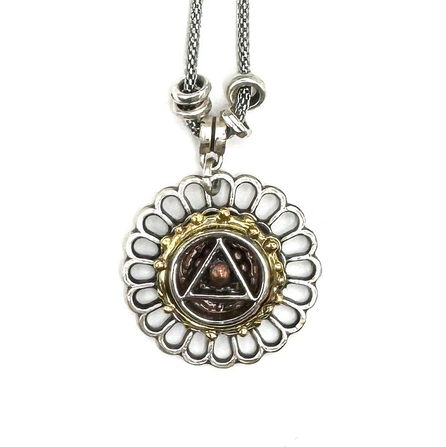 One-of a- Kind sobriety pendants are unique, handcrafted pieces of jewelry designed to symbolize and celebrate your journey in recovery. Each pendant is meticulously crafted from high-quality materials, such as mixed metals, hand painting, crystal resin, and features intricate designs or personalized designs that reflect your personal story and commitment to sobriety. These pendants incorporate the unity symbol serving as a constant, meaningful reminder of your dedication and achievements in the program. - thank you for your interest