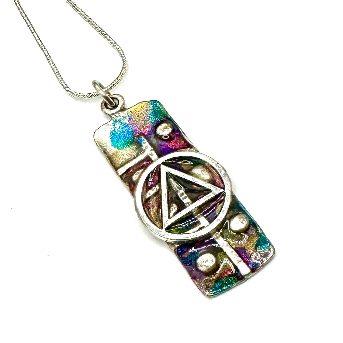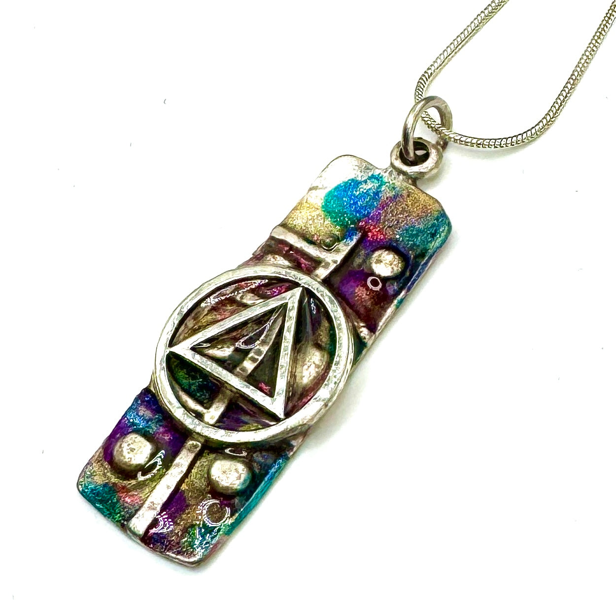 Silver plated 18” chain. This is a One of a Kind Pendant that’s sure to stand out!