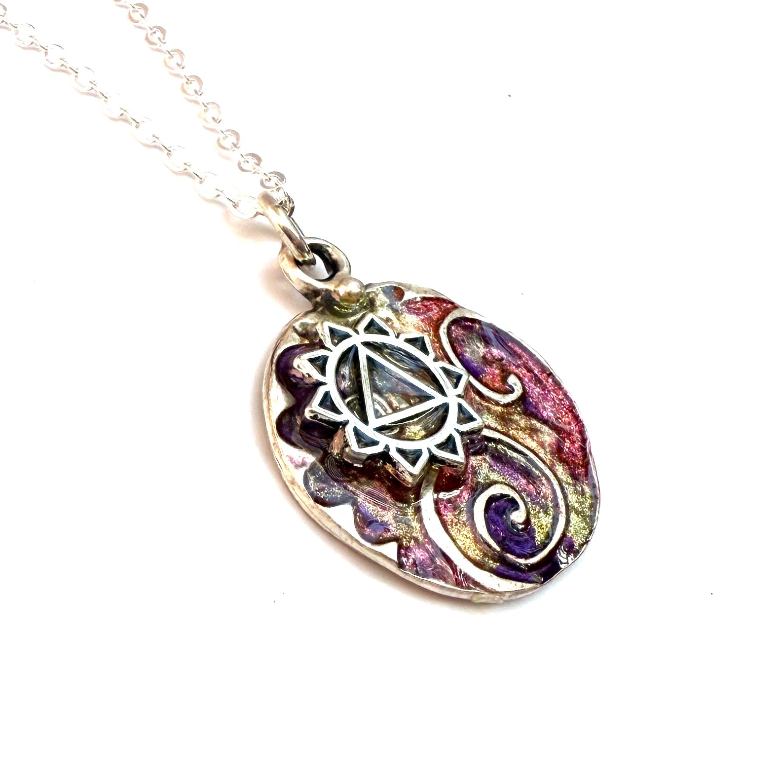 Silver plated 18” chain. This is a One of a Kind Pendant that’s sure to stand out!