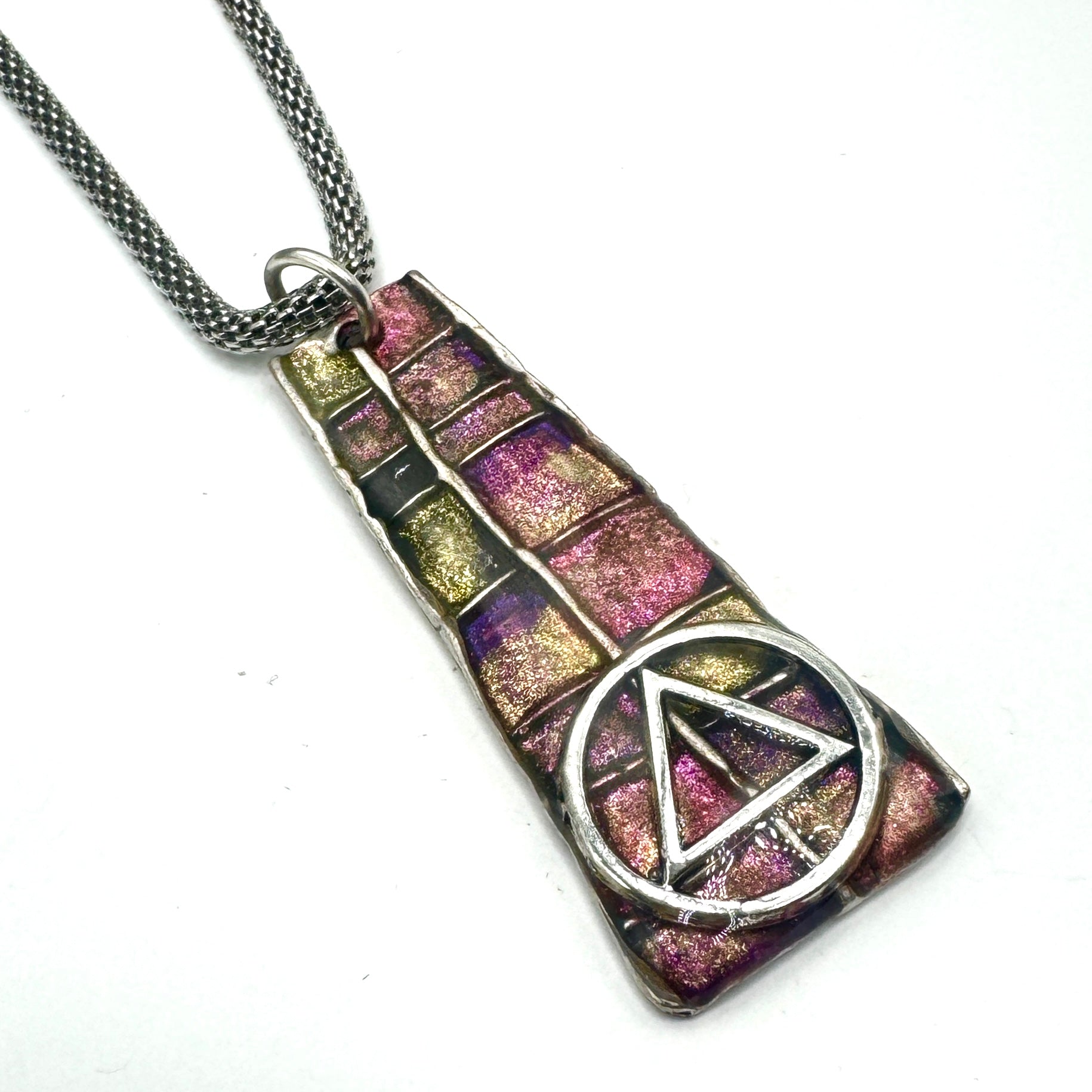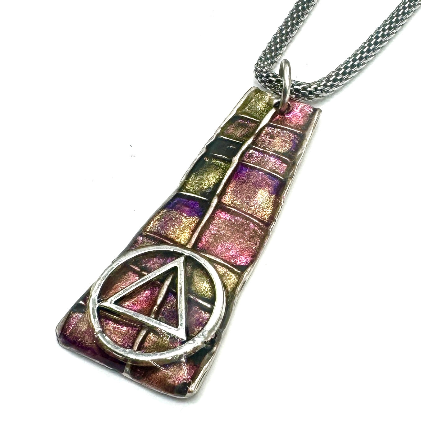 Elevate your style with unique hand-painted resin pendant necklaces! Each piece is a miniature work of art, perfect for expressing your journey in recovery. 18” silver plated chain. Your sure to love this one of a kind pendant necklace by Michelle b