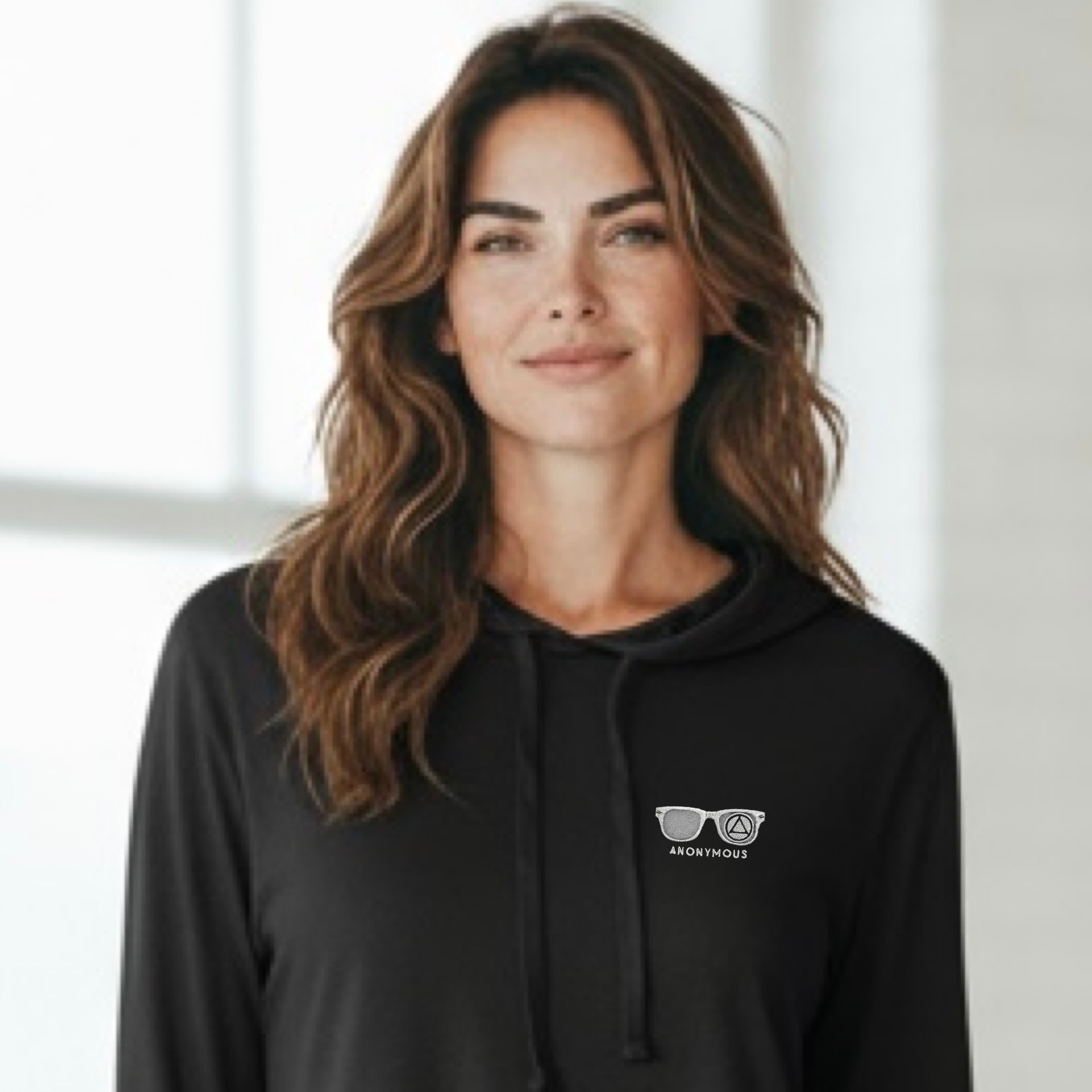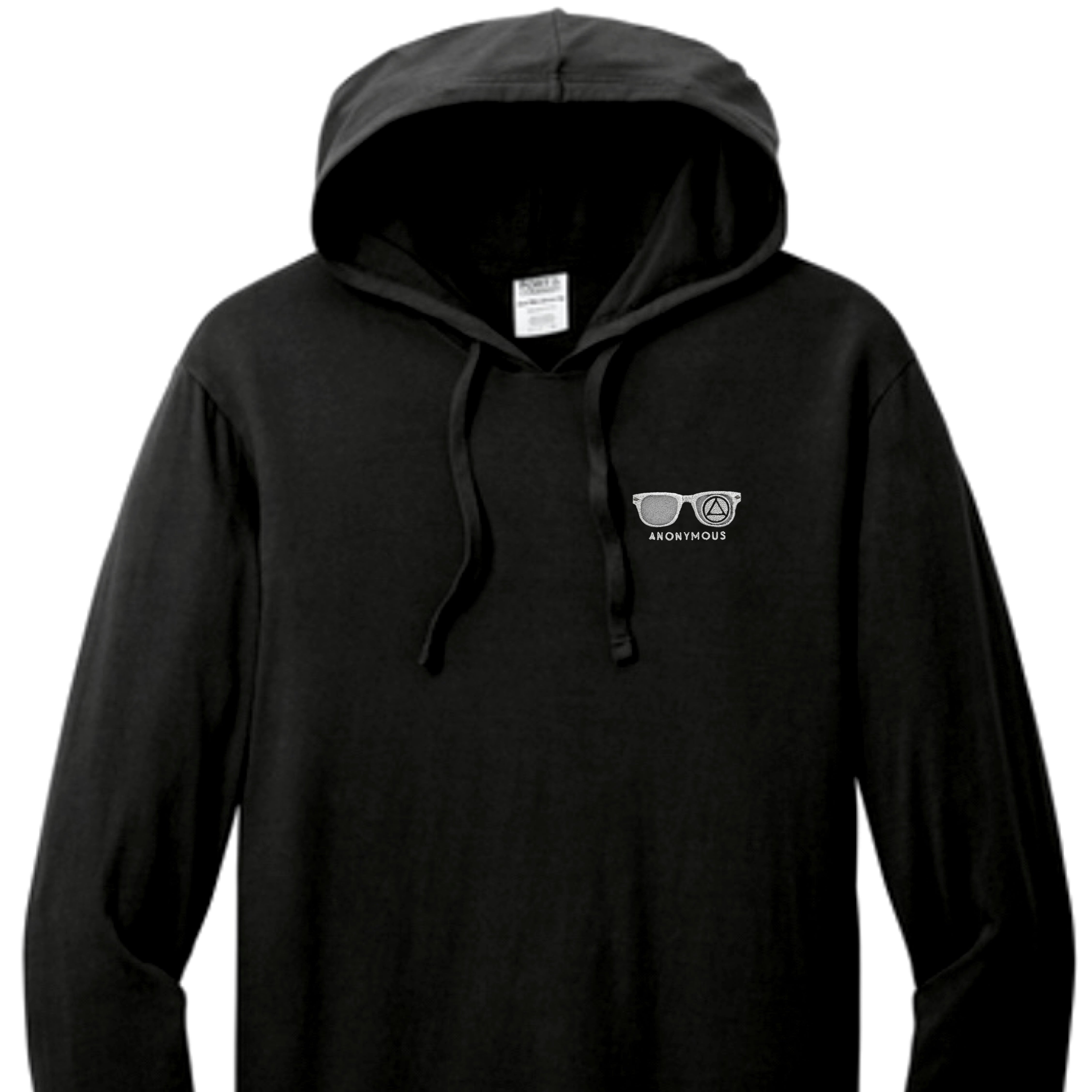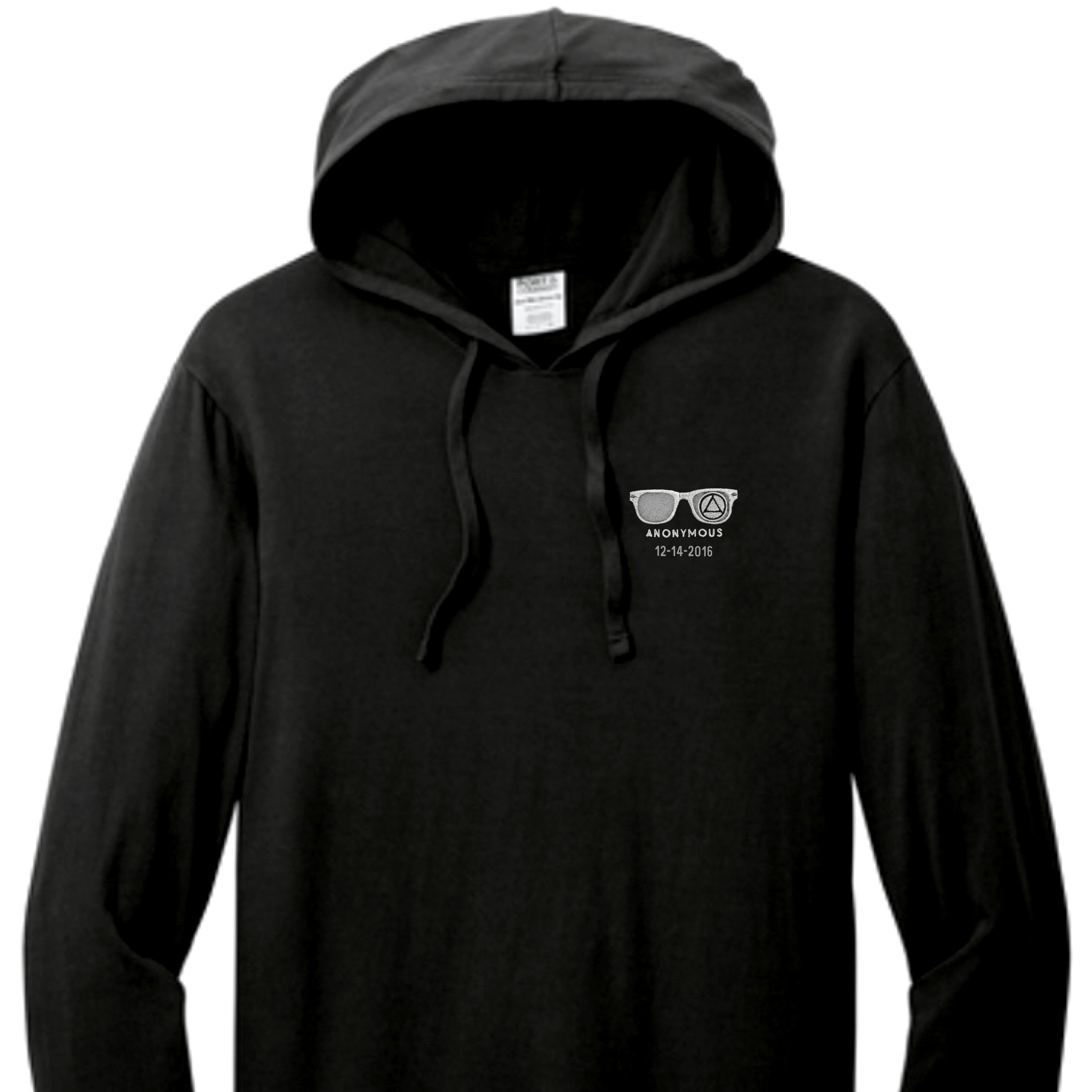 Embroidered Anonymous Black Beach Washed Garment Dyed Hooded Long Sleeve T with Or Without Sobriety Date