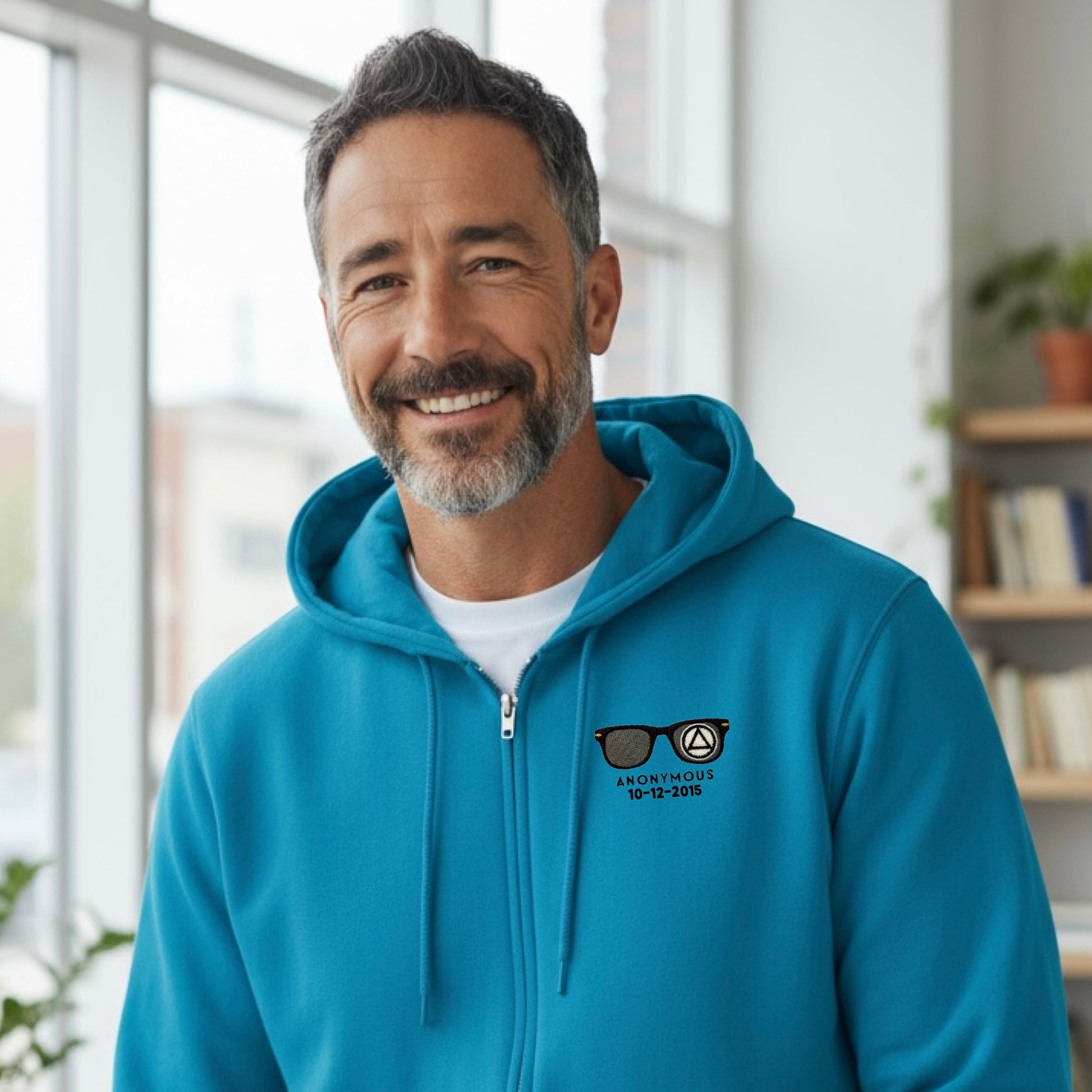 Embroidered Anonymous “Blue Jay” Fleece Full Zip Hooded Zip Sweatshirt With Or Without Sobriety Date