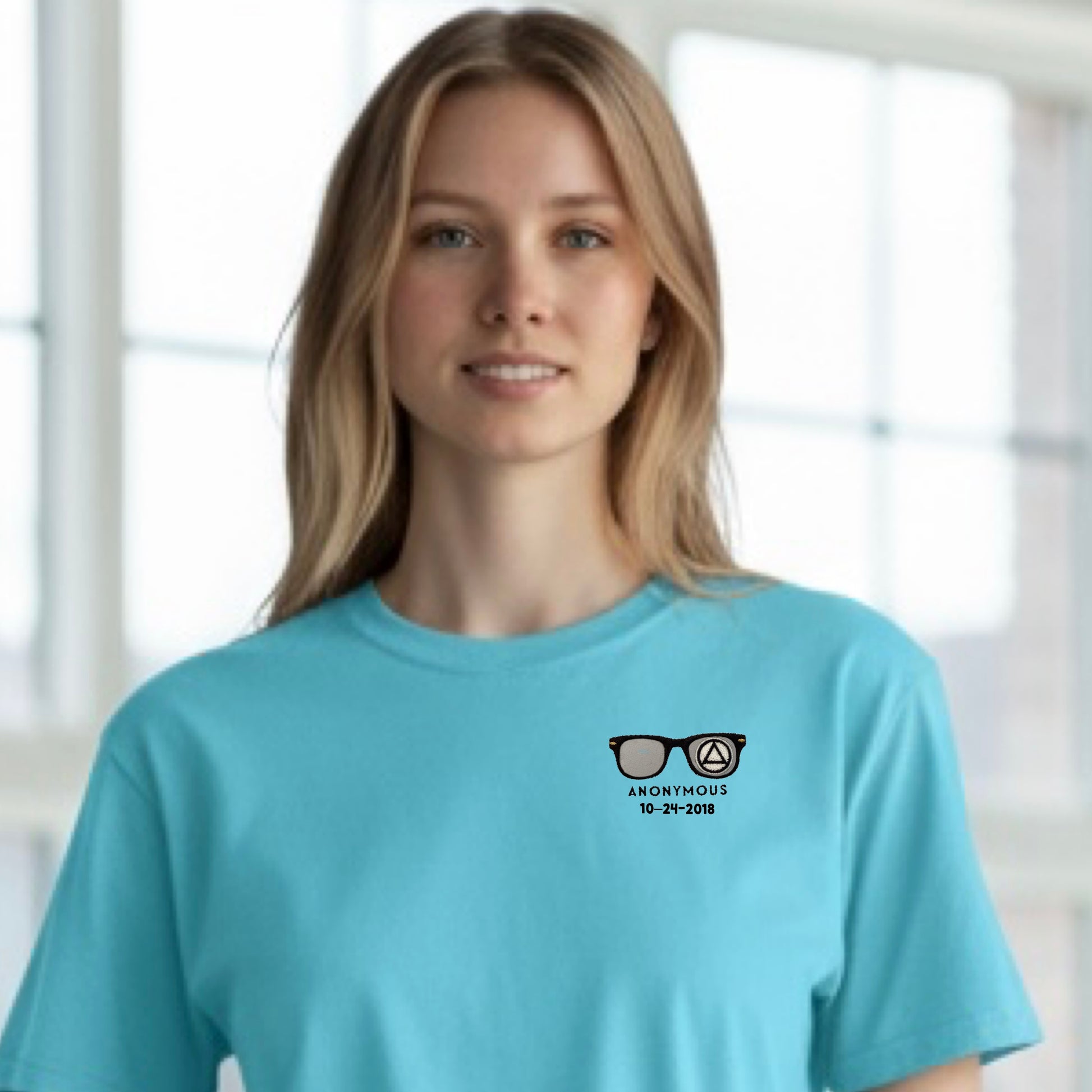 Embroidered Anonymous “Tidal Wave” Beach Washed Garment Dyed T-Shirt With Or Without Sobriety Date