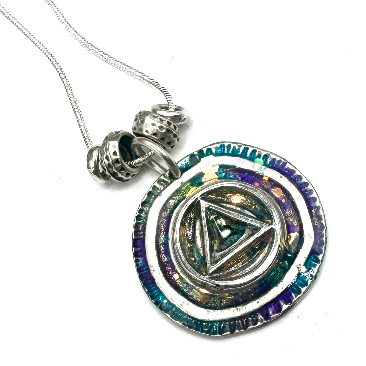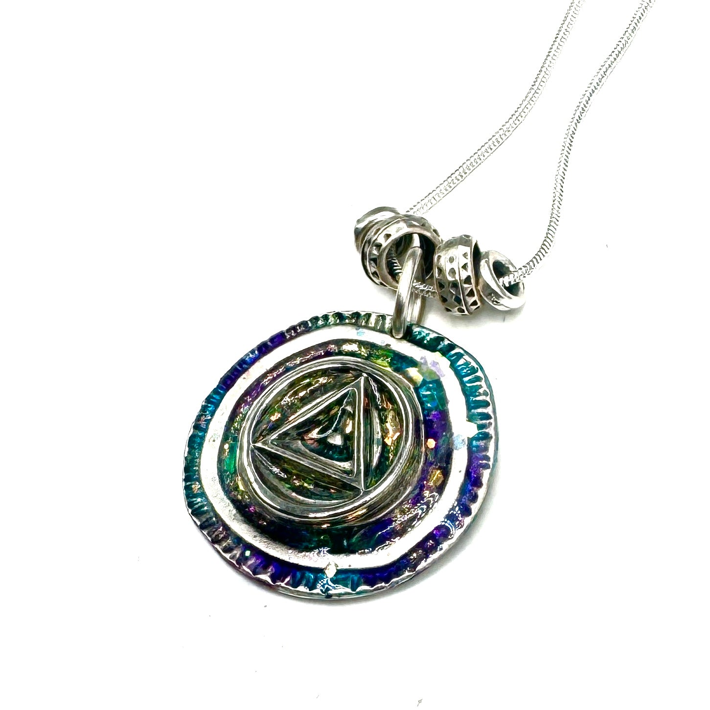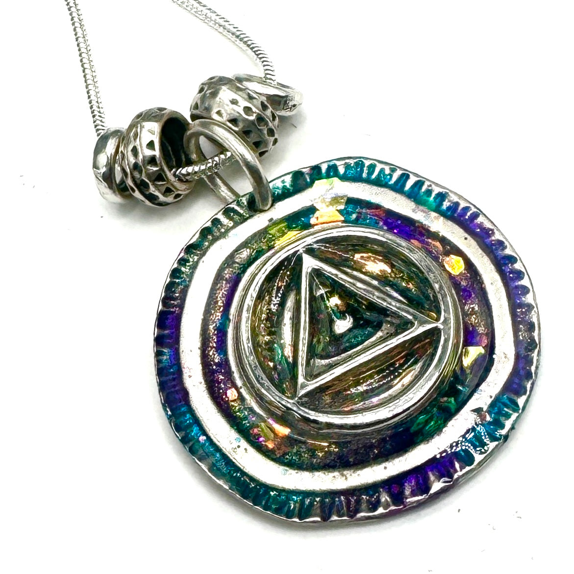 Elevate your style with unique hand-painted resin pendant necklaces! Each piece is a miniature work of art, perfect for expressing your journey in recovery. 18” silver plated chain. Your sure to love this one of a kind pendant necklace by Michelle b