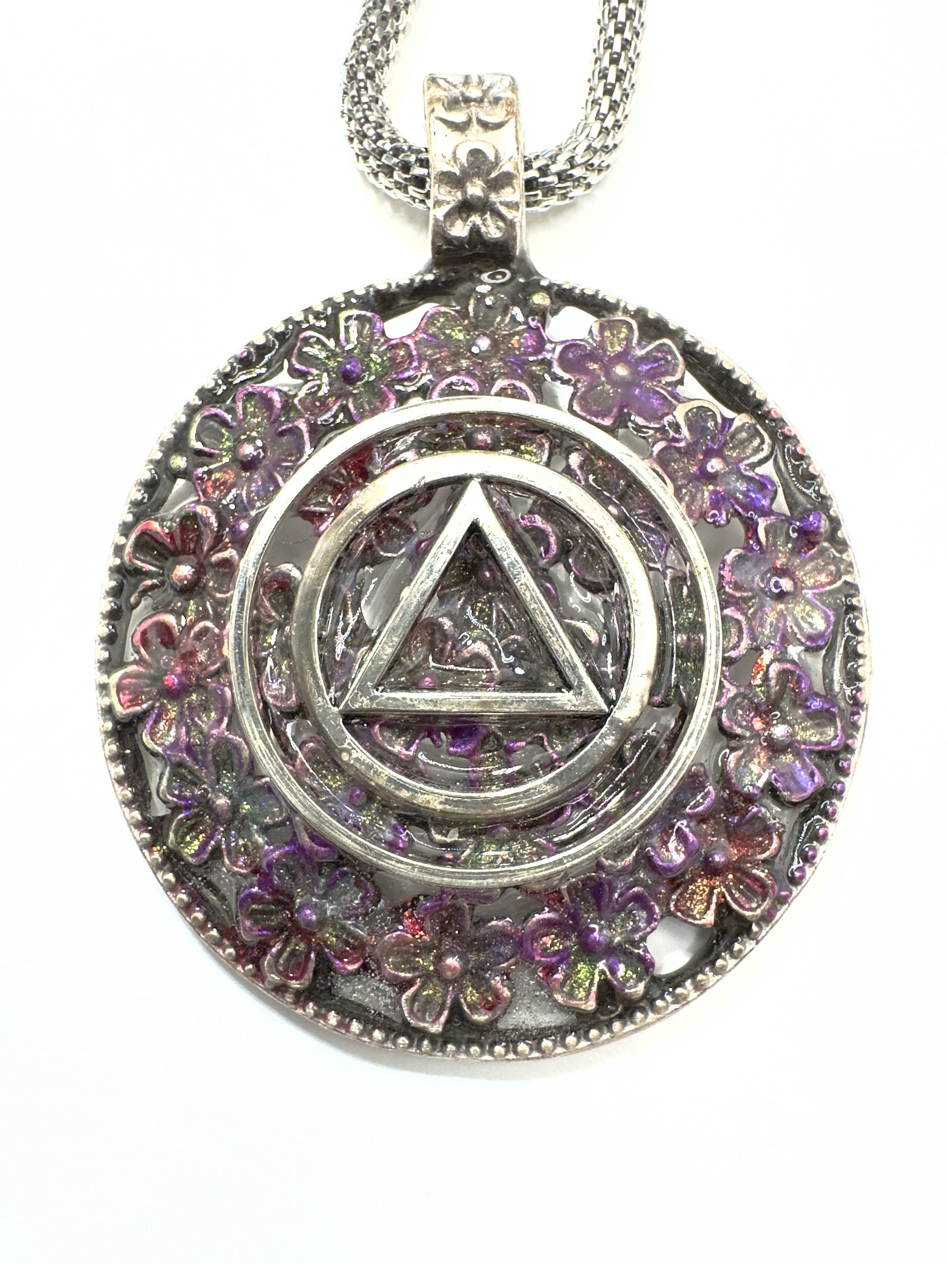 Elevate your style with unique hand-painted resin pendant necklaces! Each piece is a miniature work of art, perfect for expressing your journey in recovery. 18” silver plated chain. Your sure to love this one of a kind pendant necklace by Michelle b