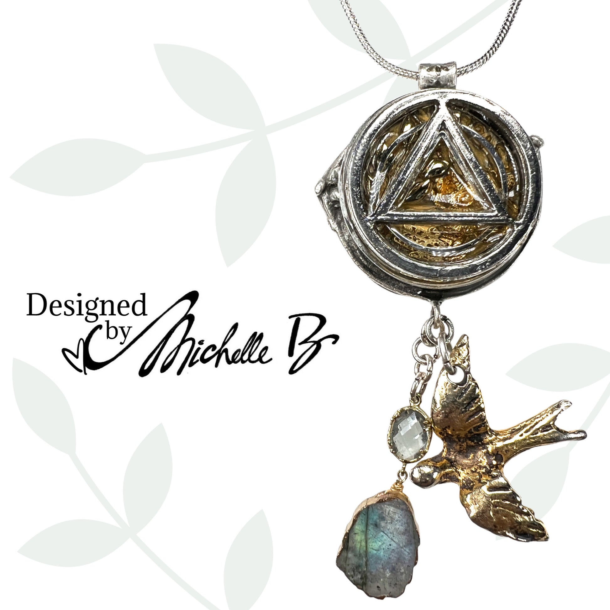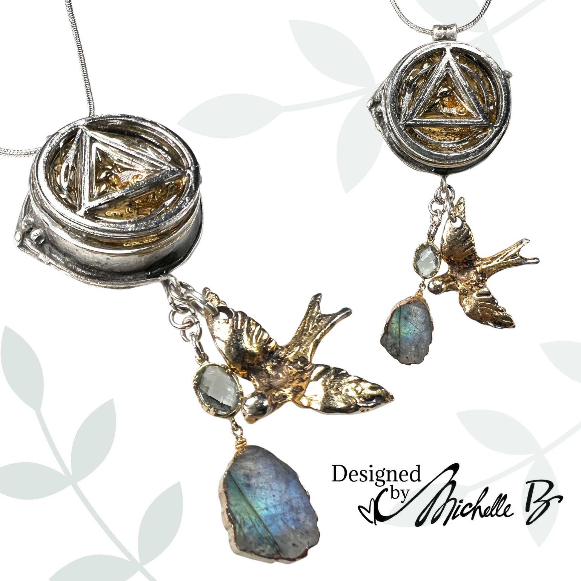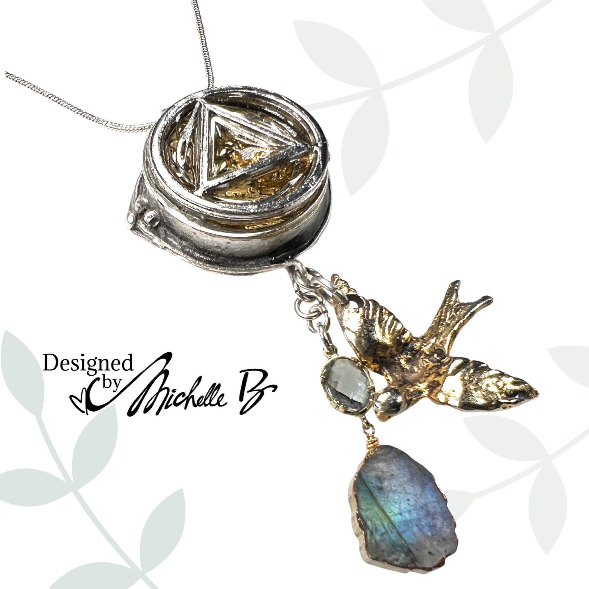 This is a beautiful pendant necklace with a labradorite drop and a soaring bird