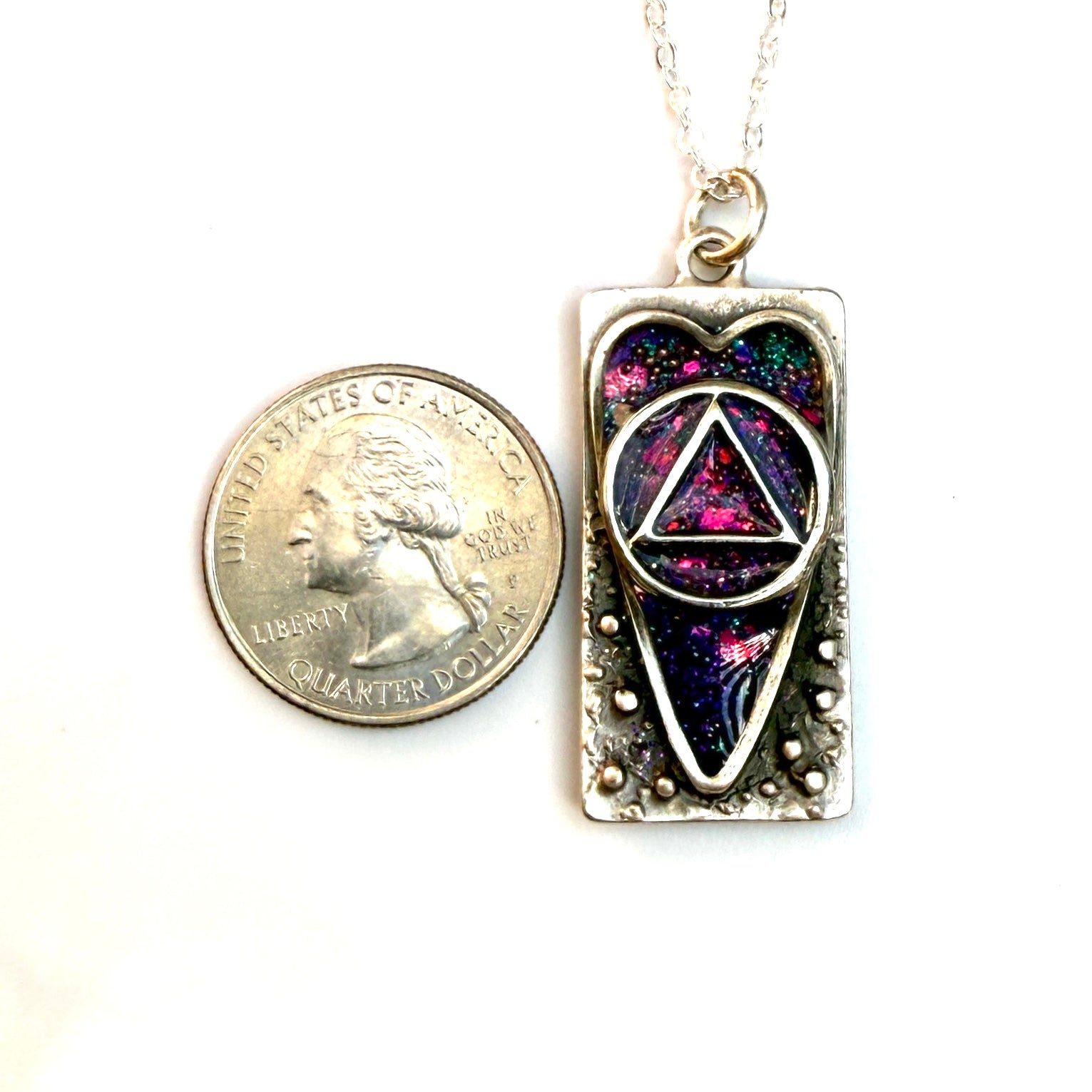 One-of a- Kind hand painted sobriety pendants are unique, handcrafted pieces of jewelry designed to symbolize and celebrate your journey in recovery. Hand painted with crystal clear resin by Michelle b