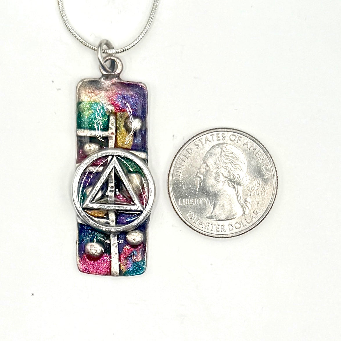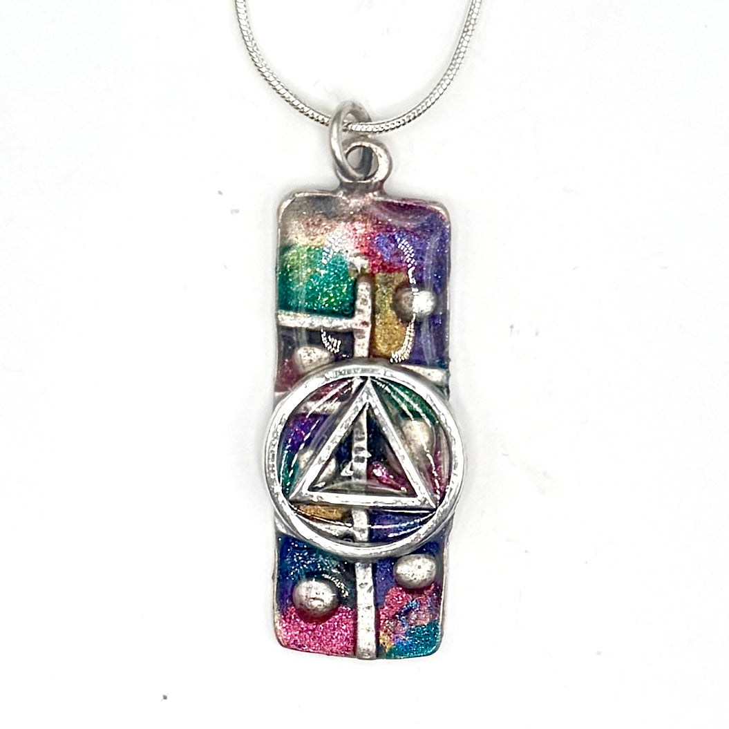 Elevate your style with unique hand-painted resin pendant necklaces! Each piece is a miniature work of art, perfect for expressing your journey in recovery. 18” silver plated chain. Your sure to love this one of a kind pendant necklace by Michelle b