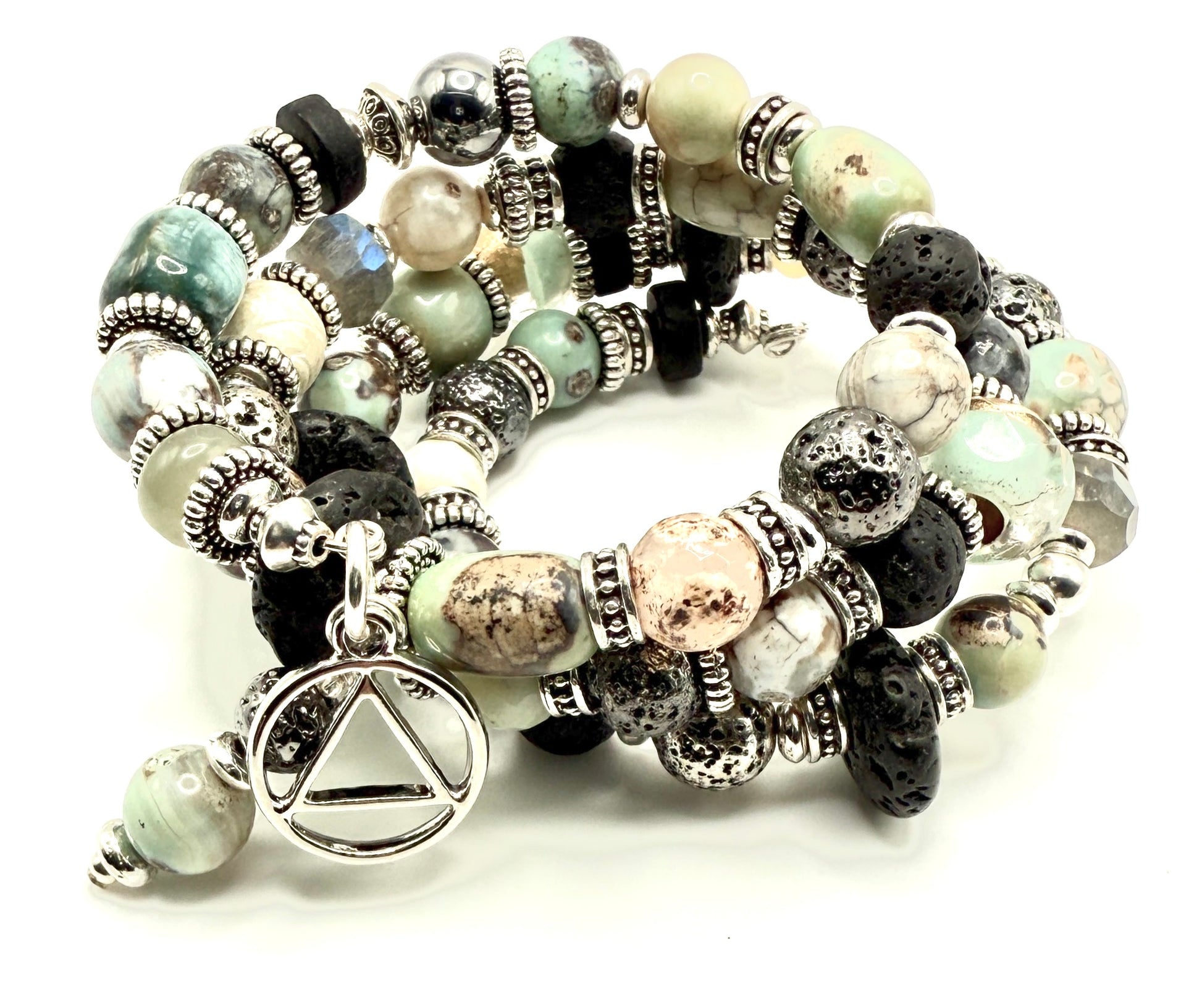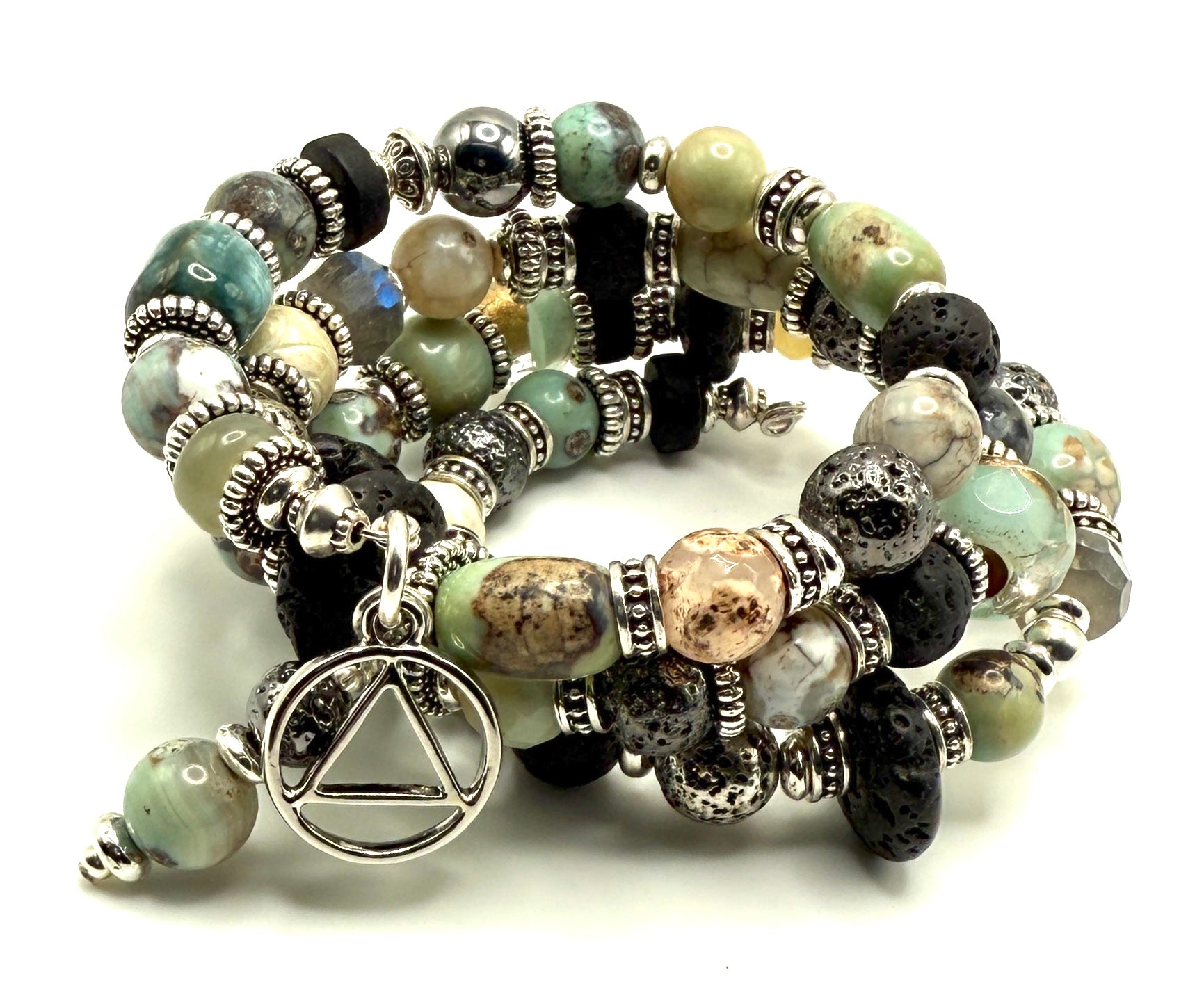 Gemstone wire wrap bracelets are designed by Michelle B. They offer a unique blend of beauty and creativity. Each piece is meticulously handcrafted, featuring an array of natural gemstones. Michelle B.’s attention to detail and artistic vision make her One of a Kind creations stand out as timeless, wearable art!