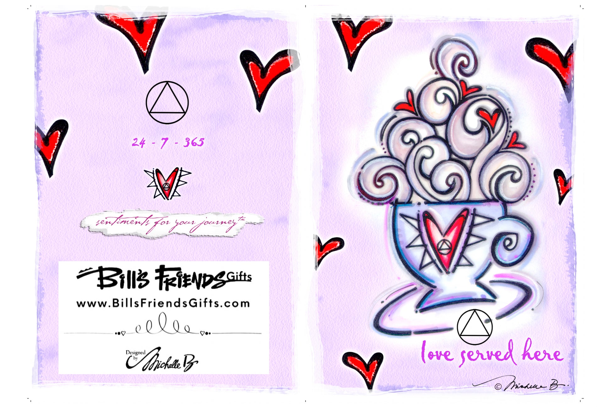 Michelle B’s artful greeting cards ( front and back) are specially designed. ( Blank inside for your special message). -Whether you're looking for a card to celebrate a milestone, provide comfort during challenging times, or simply to remind someone of their strength and resilience, these greeting cards and bookmarks are perfect! Each design is a work of art. Celebrate your own achievements or support someone special with a greeting card or bookmark that speaks to the heart and spirit of the 12-step program. All Greeting Cards are packaged in cellophane and professionally printed on heavy card stock. (blank inside)