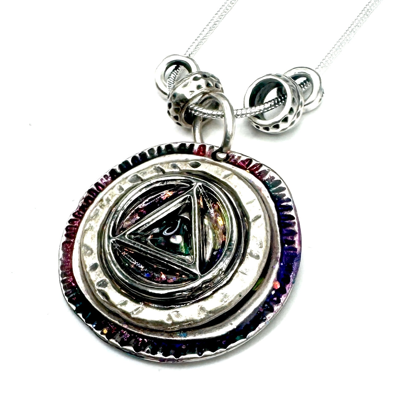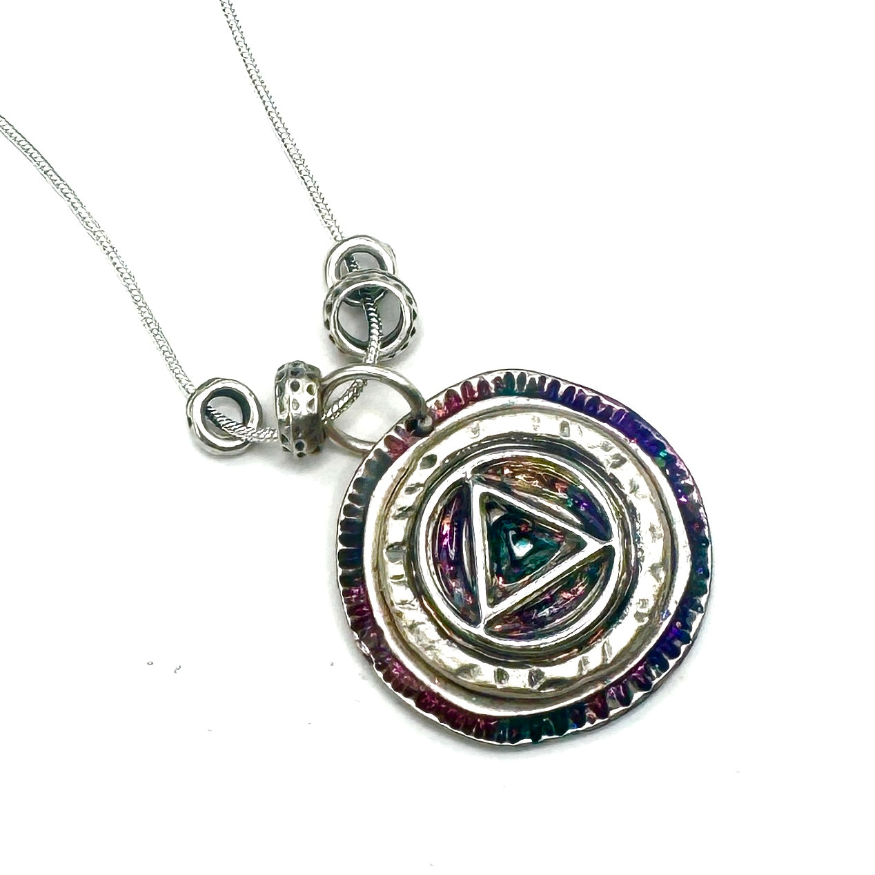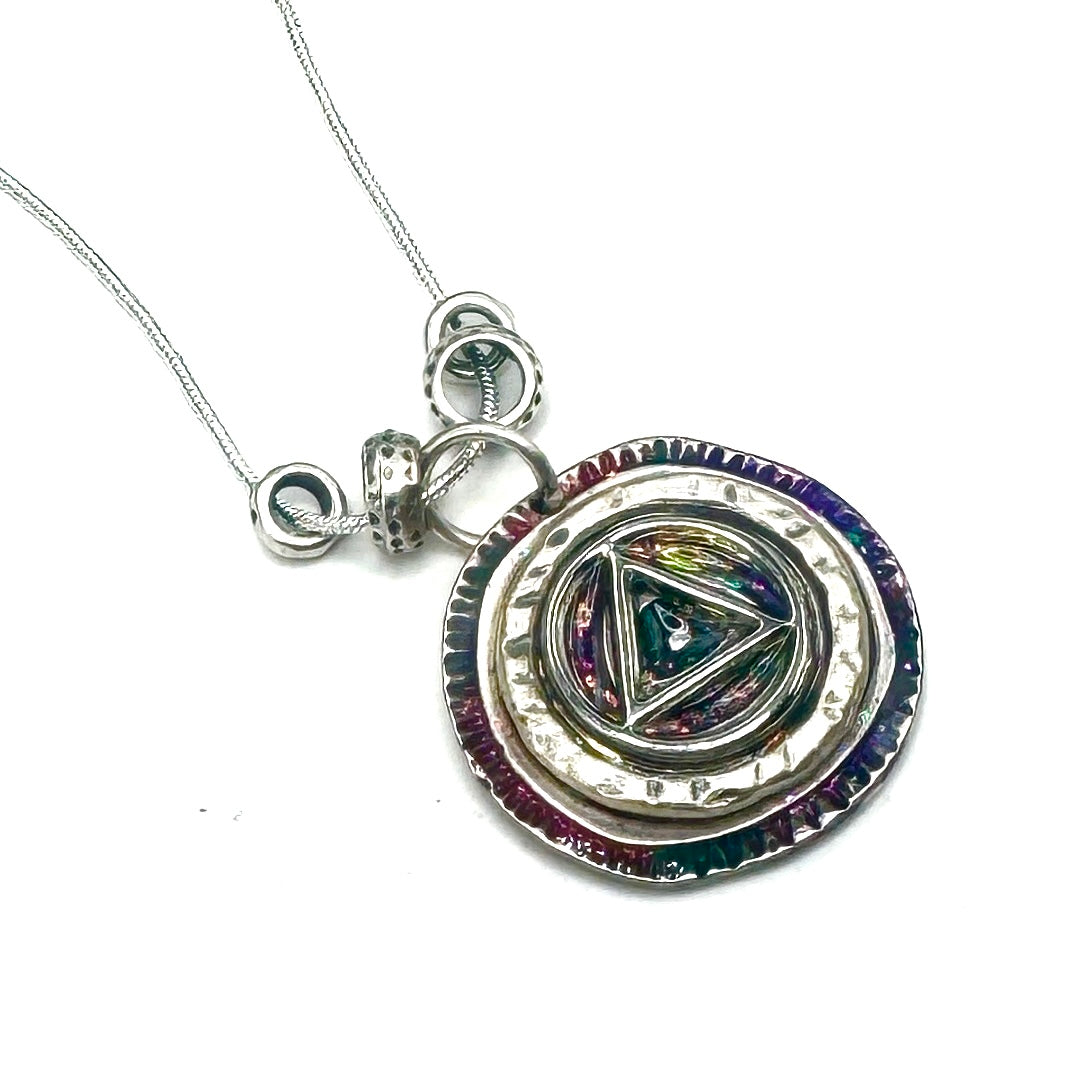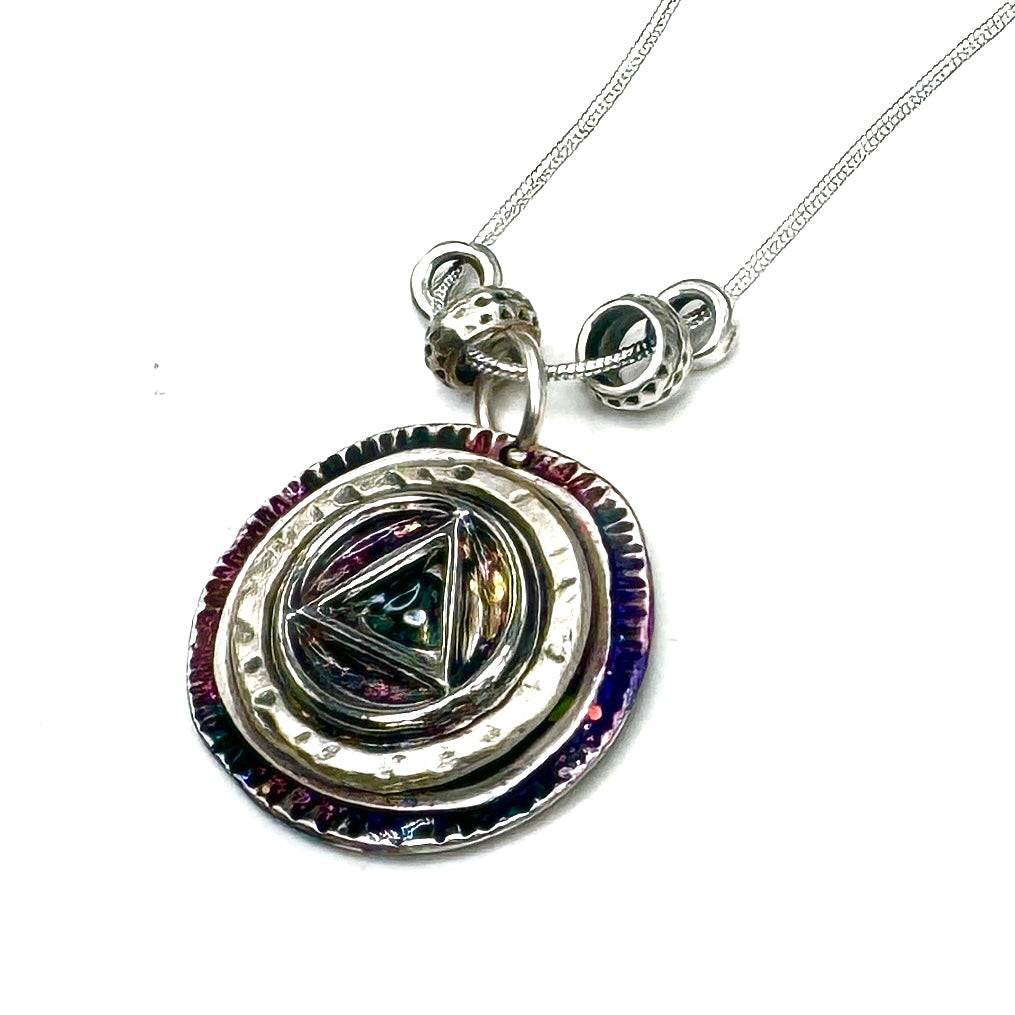 Elevate your style with unique hand-painted resin pendant necklaces! Each piece is a miniature work of art, perfect for expressing your journey in recovery. 18” silver plated chain. Your sure to love this one of a kind pendant necklace by Michelle b