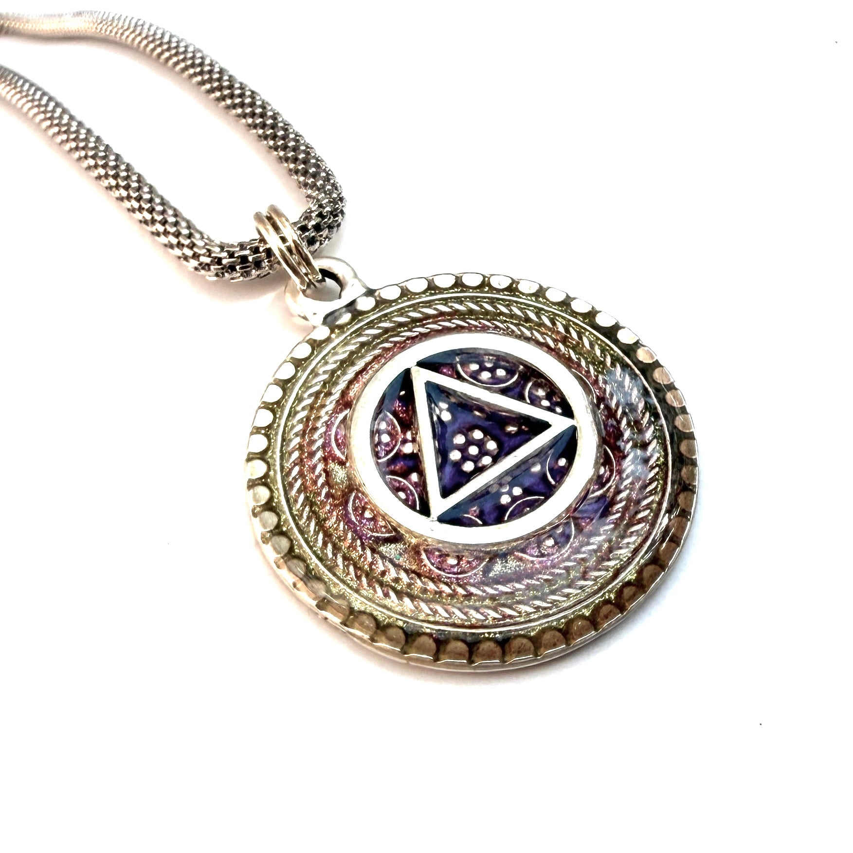 Silver plated 18” chain. This is a One of a Kind Pendant that’s sure to stand out!