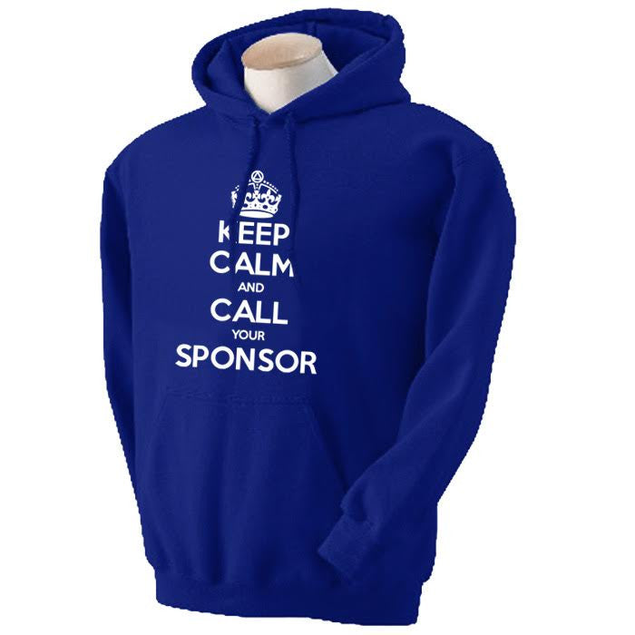 Our Great New Keep Calm Design printed in White on a Royal Blue Hoodie. Super Soft 50/50 Cotton/Poly Fleece.
