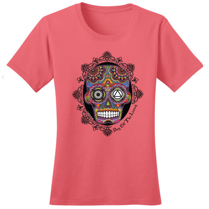 Our Great New and Very Popular Sugar Skull Design in Full Color – printed on 100% Ring Spun Cotton – Women’s Cut