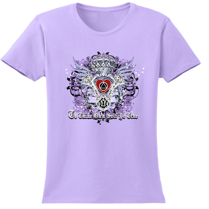 To Thine Own Self Be True Design on 100% Cotton Ladies Cut Tee.
