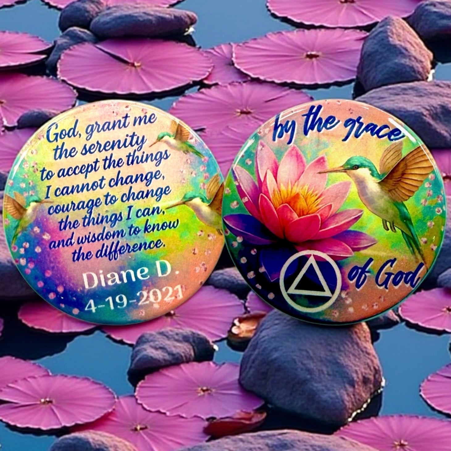 Personalized Sobriety Medallions with Name and Sobriety Date by Artist Michelle B are Meaningful Keepsakes and Make...