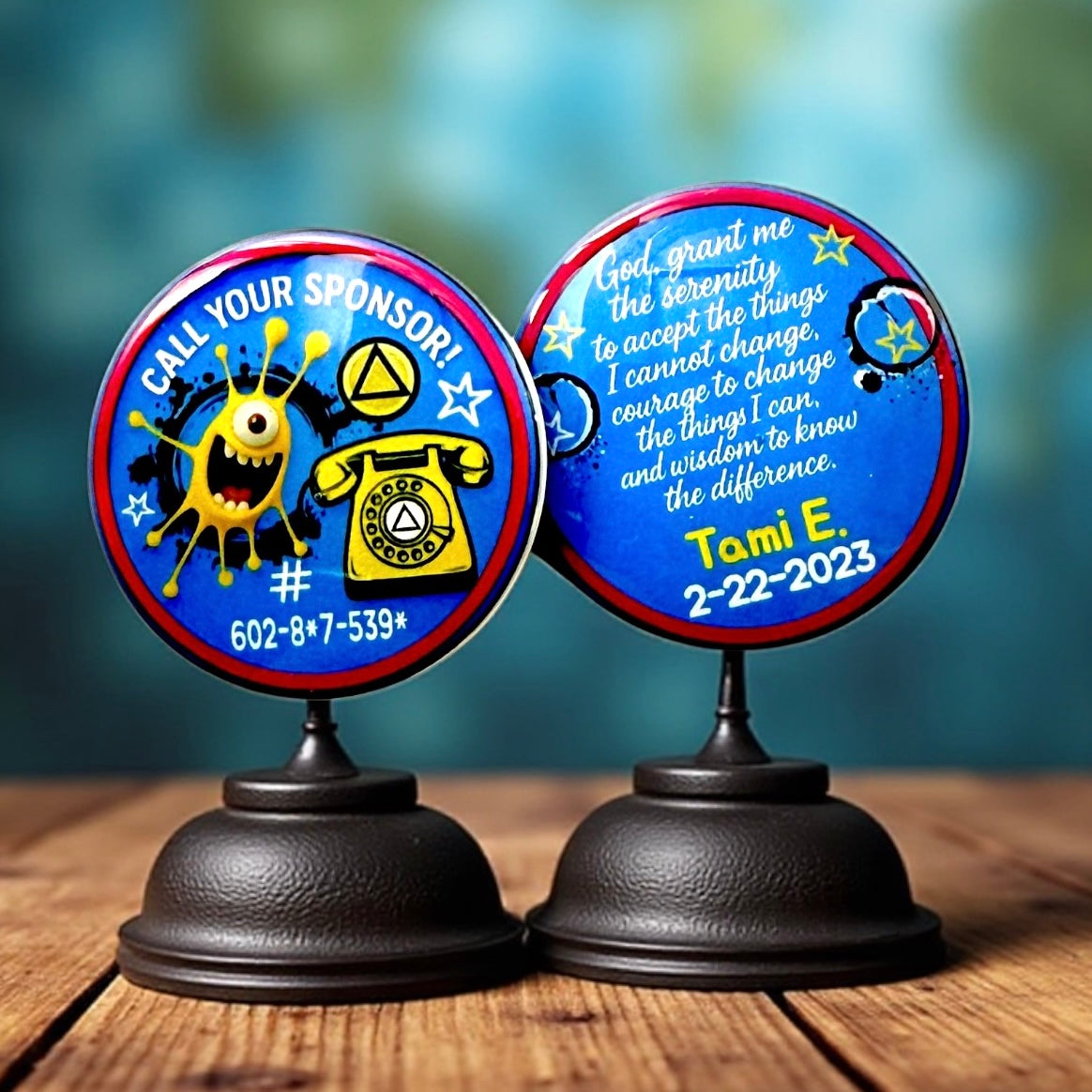 Personalized Sobriety Medallions with Name and Sobriety Date by Artist Michelle B are Meaningful Keepsakes and Make Great Gifts! These Truly are Original Pieces of Art for Yourself or Someone Special.