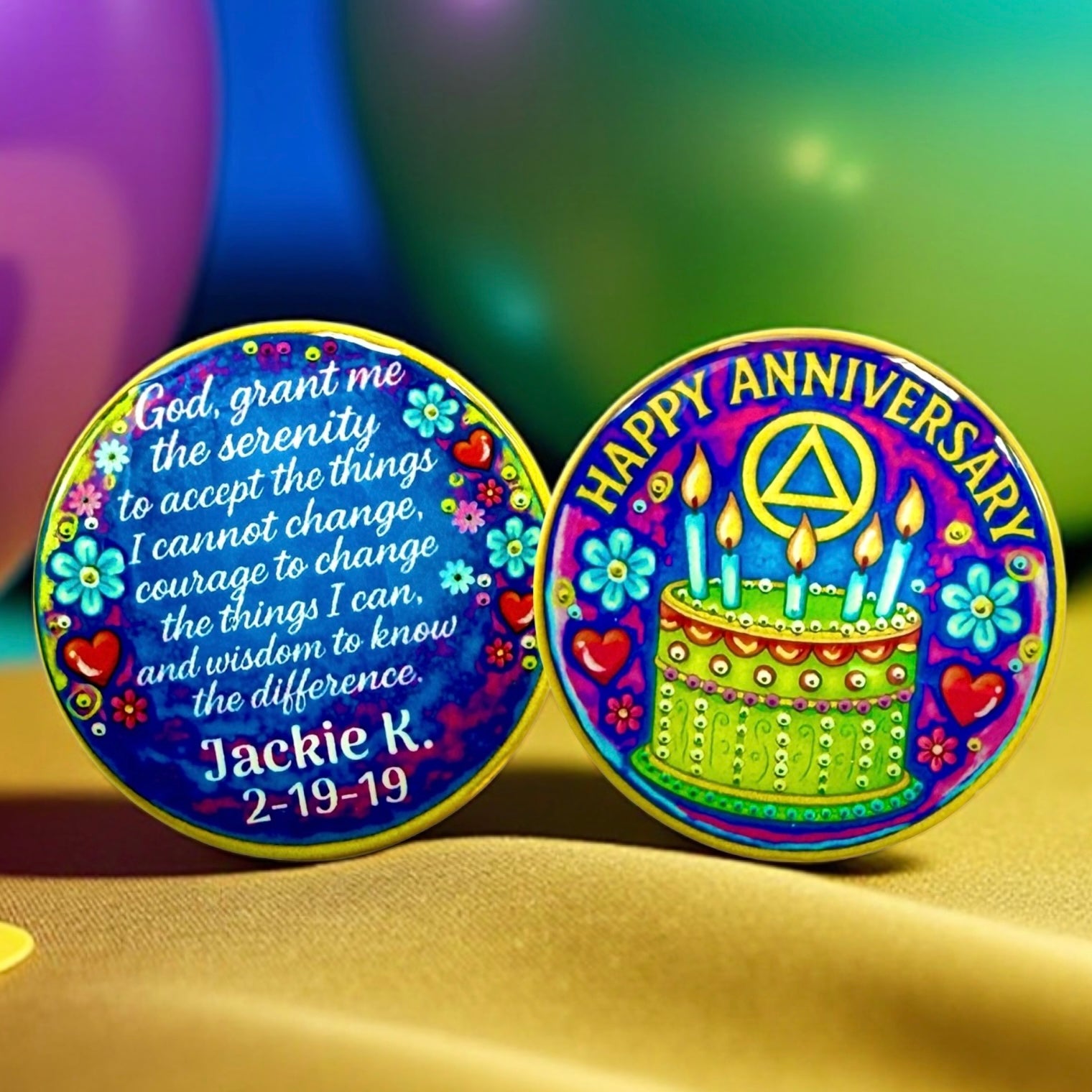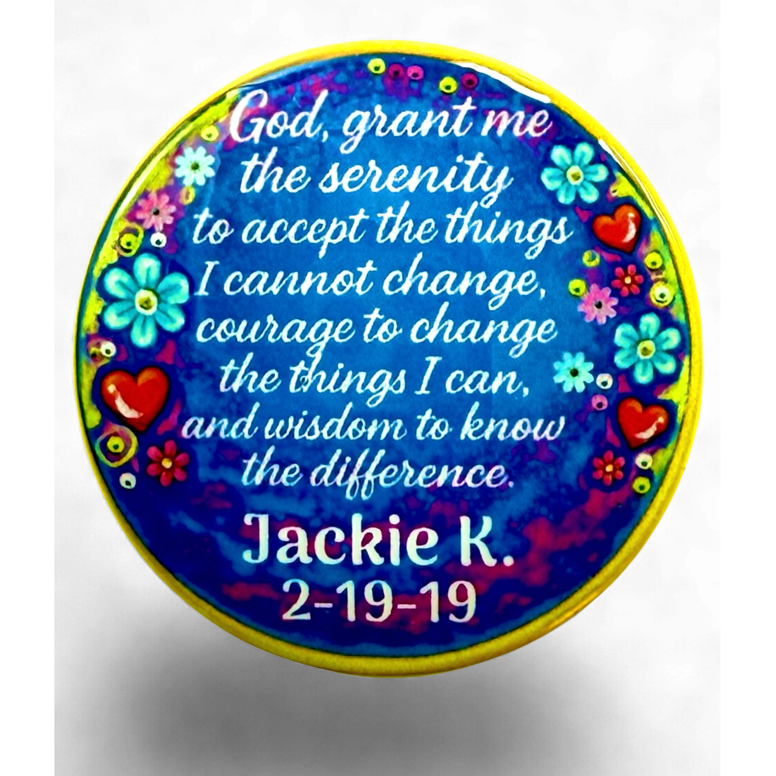 Personalized Sobriety Medallions with Name and Sobriety Date by Artist Michelle B are Meaningful Keepsakes and Make Great Gifts! These Truly are Original Pieces of Art for Yourself or Someone Special.