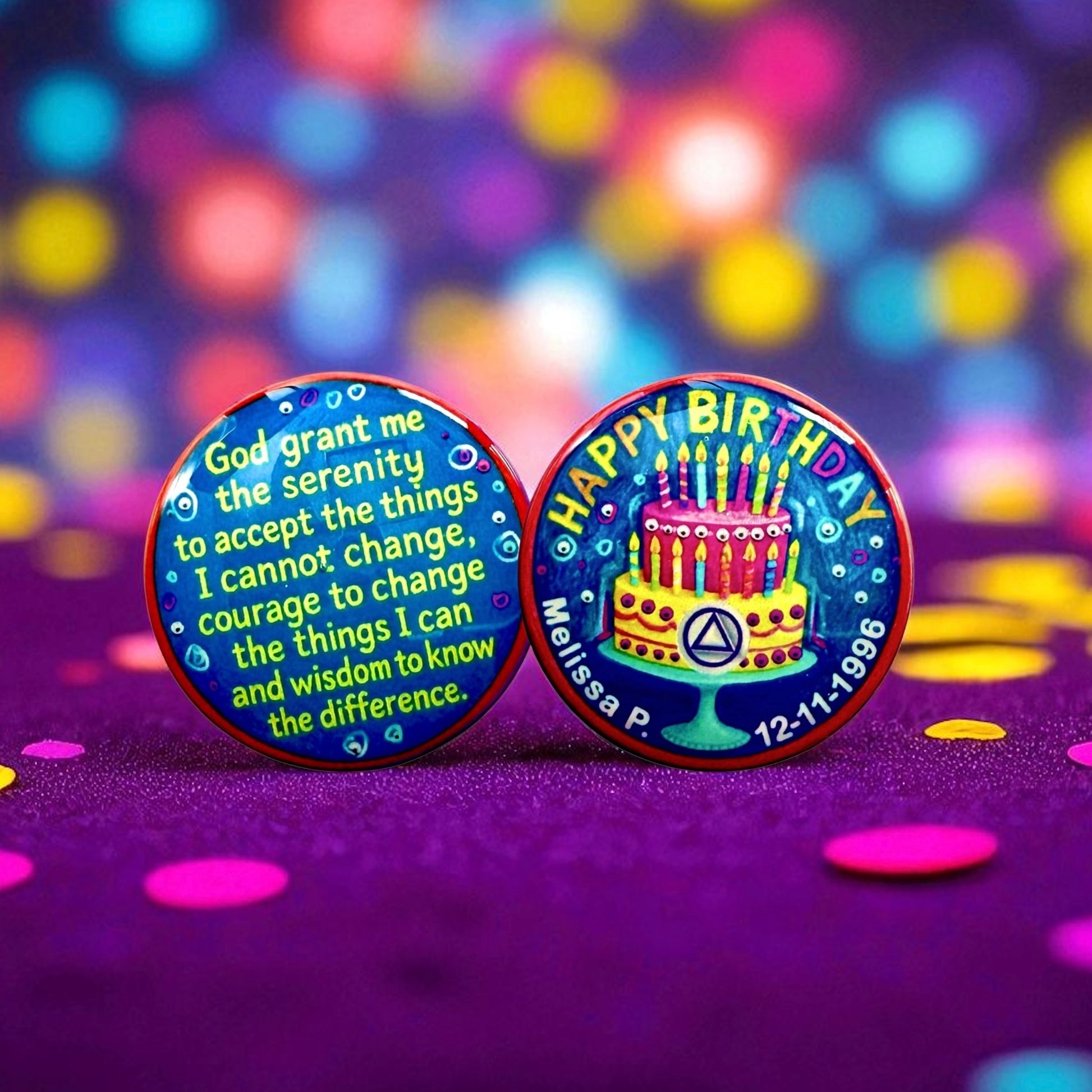 Personalized Sobriety Medallions with Name and Sobriety Date by Artist Michelle B are Meaningful Keepsakes and Make Great Gifts! These Truly are Original Pieces of Art for Yourself or Someone Special.
