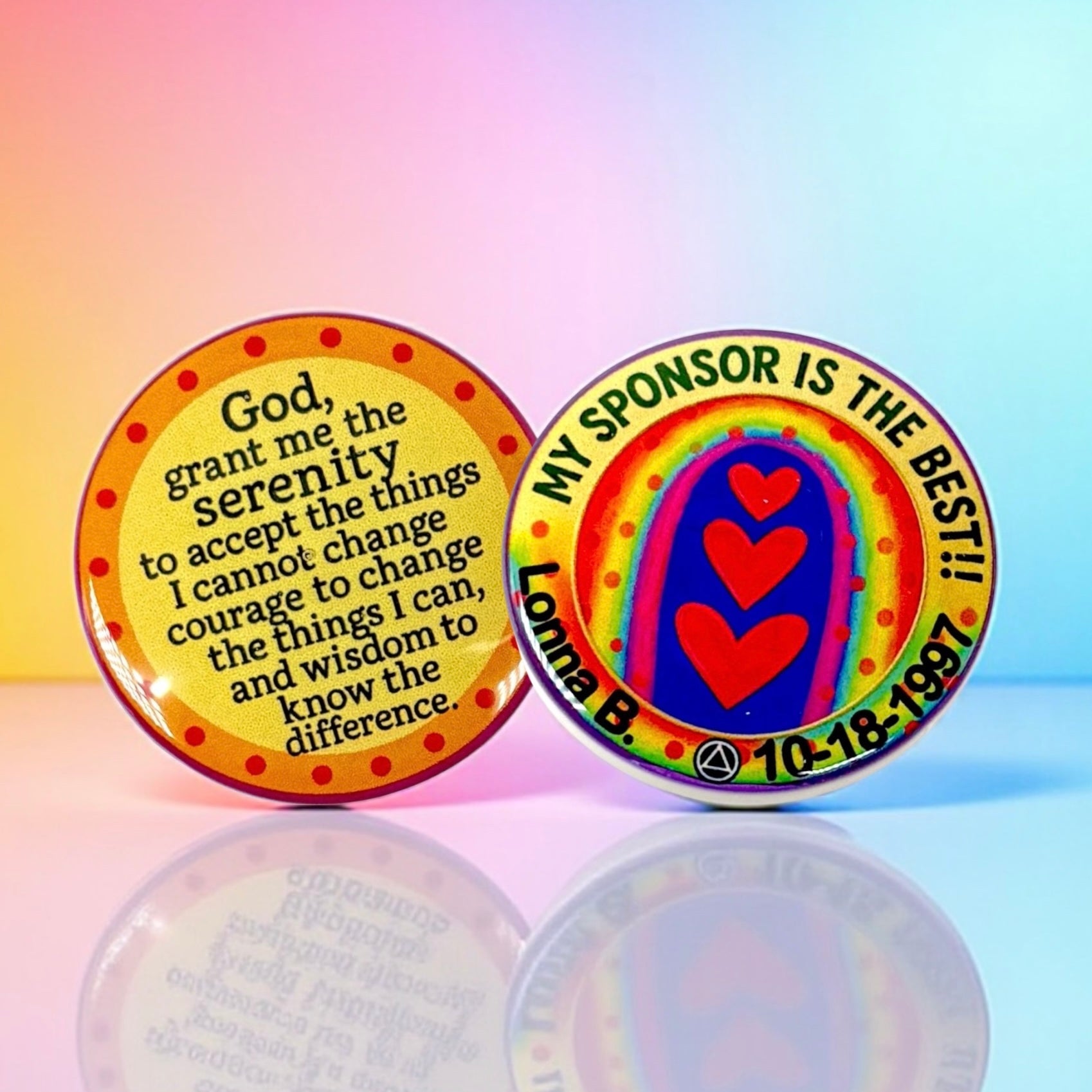Personalized Sobriety Medallions with Name and Sobriety Date by Artist Michelle B are Meaningful Keepsakes and Make Great Gifts! These Truly are Original Pieces of Art for Yourself or Someone Special.