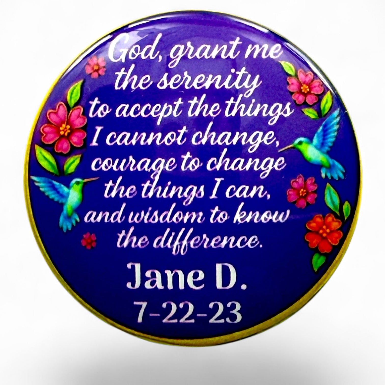 Personalized Sobriety Medallions with Name and Sobriety Date by Artist Michelle B are Meaningful Keepsakes and Make Great Gifts! These Truly are Original Pieces of Art for Yourself or Someone Special.