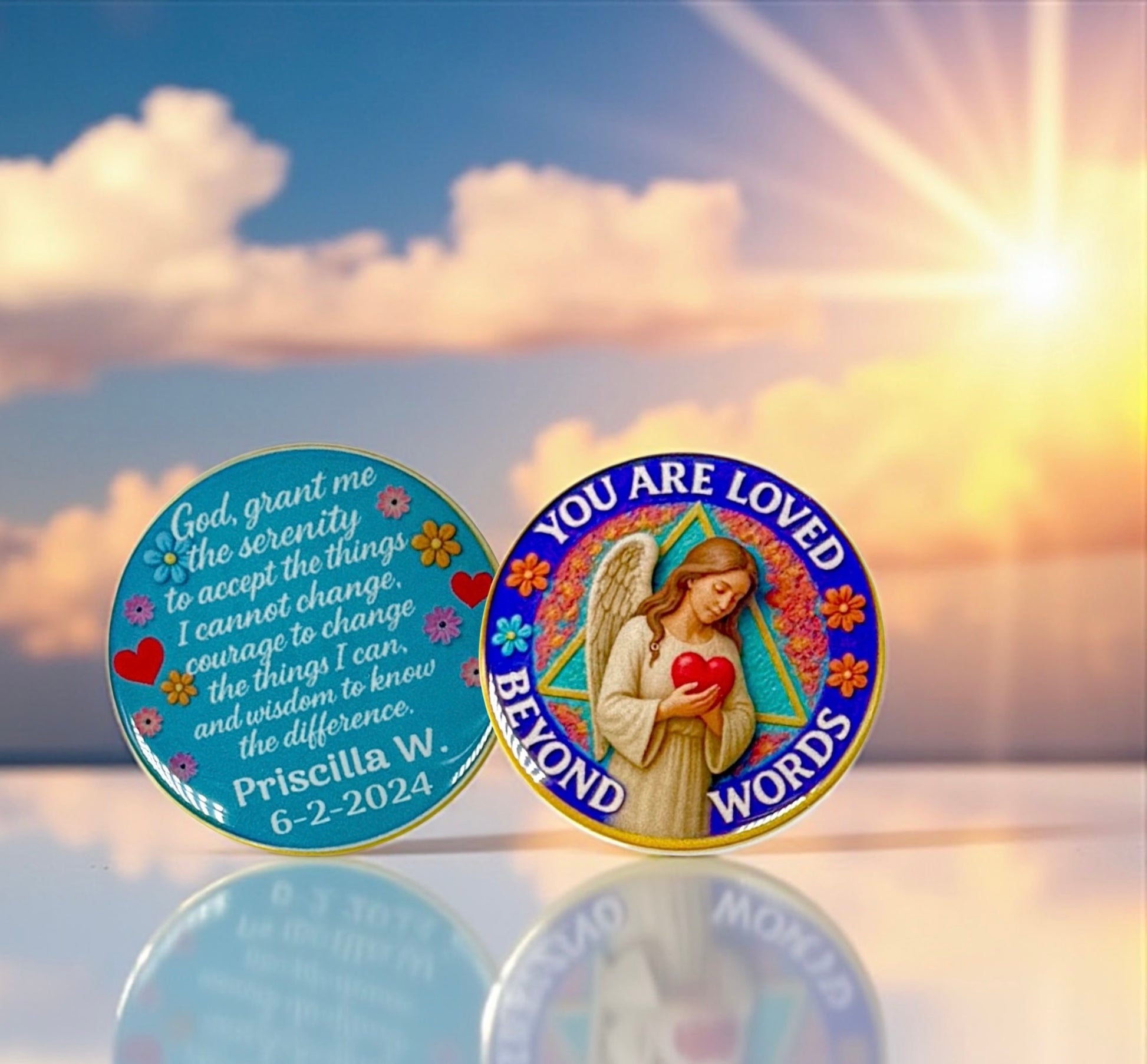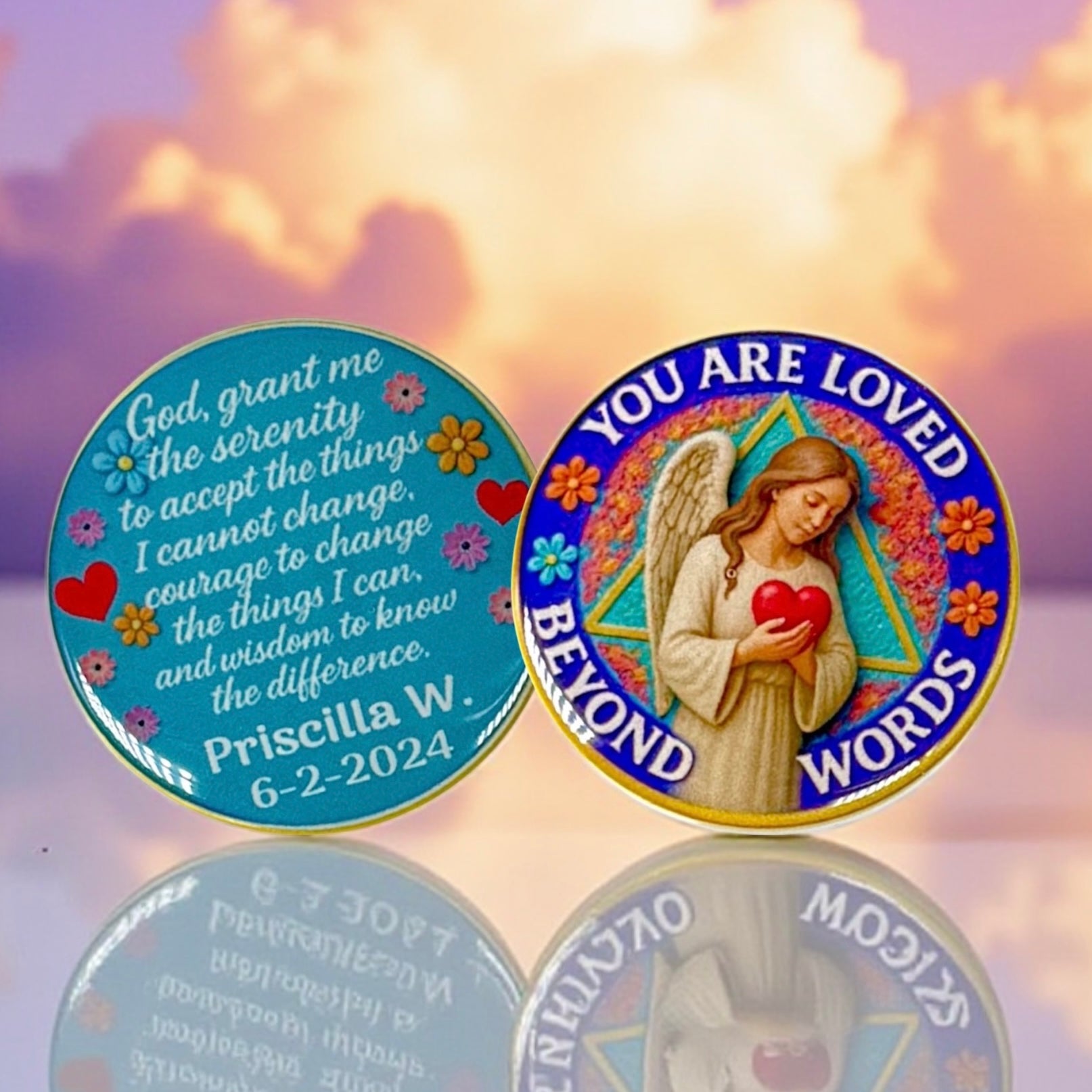 Personalized Sobriety Medallions with Name and Sobriety Date by Artist Michelle B are Meaningful Keepsakes and Make Great Gifts! These Truly are Original Pieces of Art for Yourself or Someone Special.