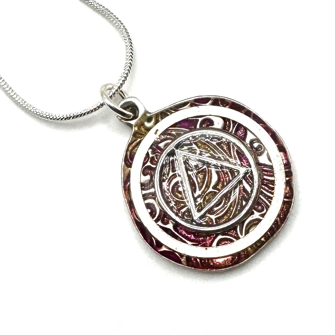 Silver plated 18” chain. This is a One of a Kind Pendant that’s sure to stand out!