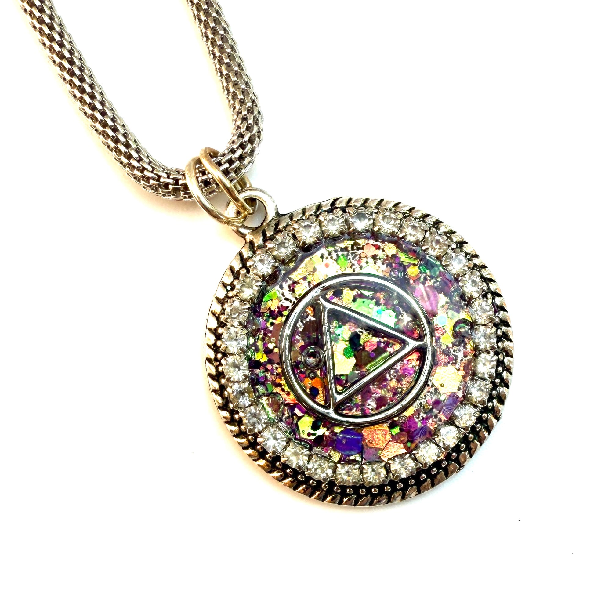 Silver plated 18” chain. This is a One of a Kind Pendant that’s sure to stand out!