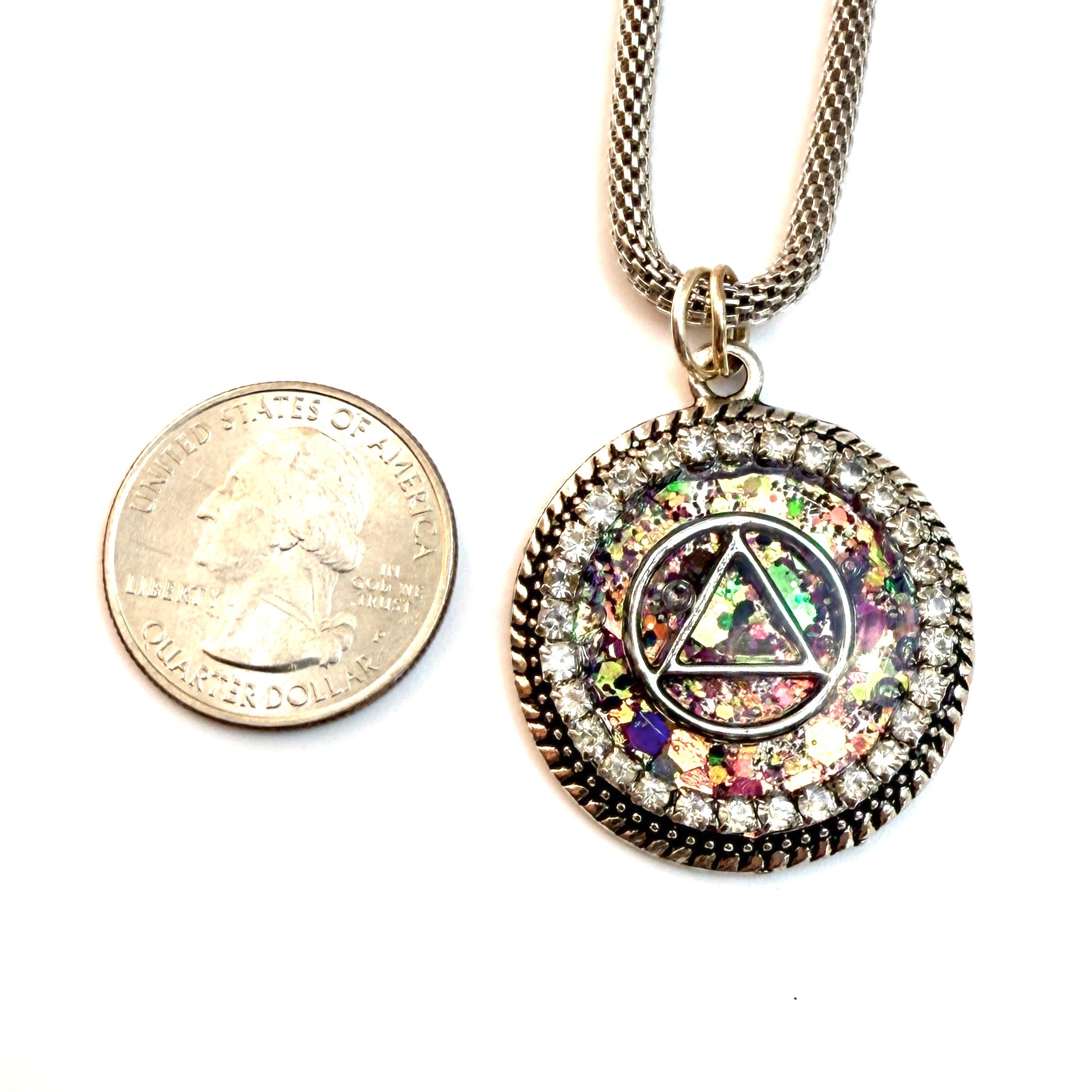 One-of a- Kind hand painted sobriety pendants are unique, handcrafted pieces of jewelry designed to symbolize and celebrate your journey in recovery. Hand painted with crystal clear resin by Michelle b