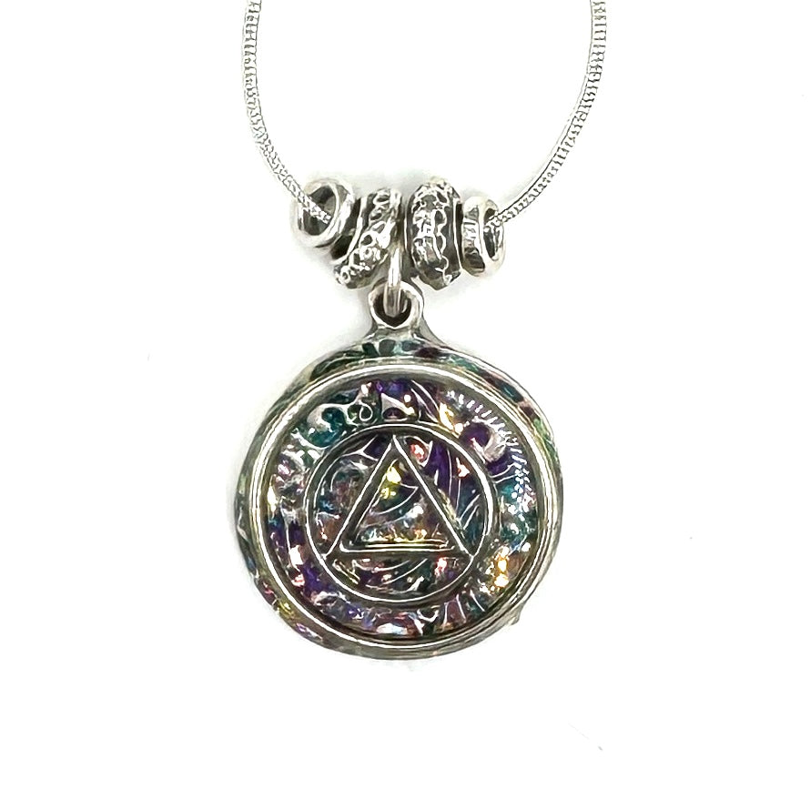 One-of a- Kind sobriety pendants are unique, handcrafted pieces of jewelry designed to symbolize and celebrate your journey in recovery. Each pendant is meticulously crafted from high-quality materials, such as mixed metals, hand painting, crystal resin, and features intricate designs or personalized designs that reflect your personal story and commitment to sobriety. These pendants incorporate the unity symbol serving as a constant, meaningful reminder of your dedication and achievements in the program. - thank you