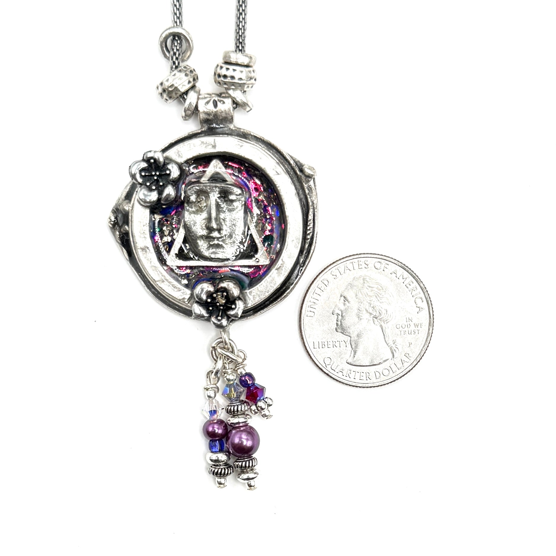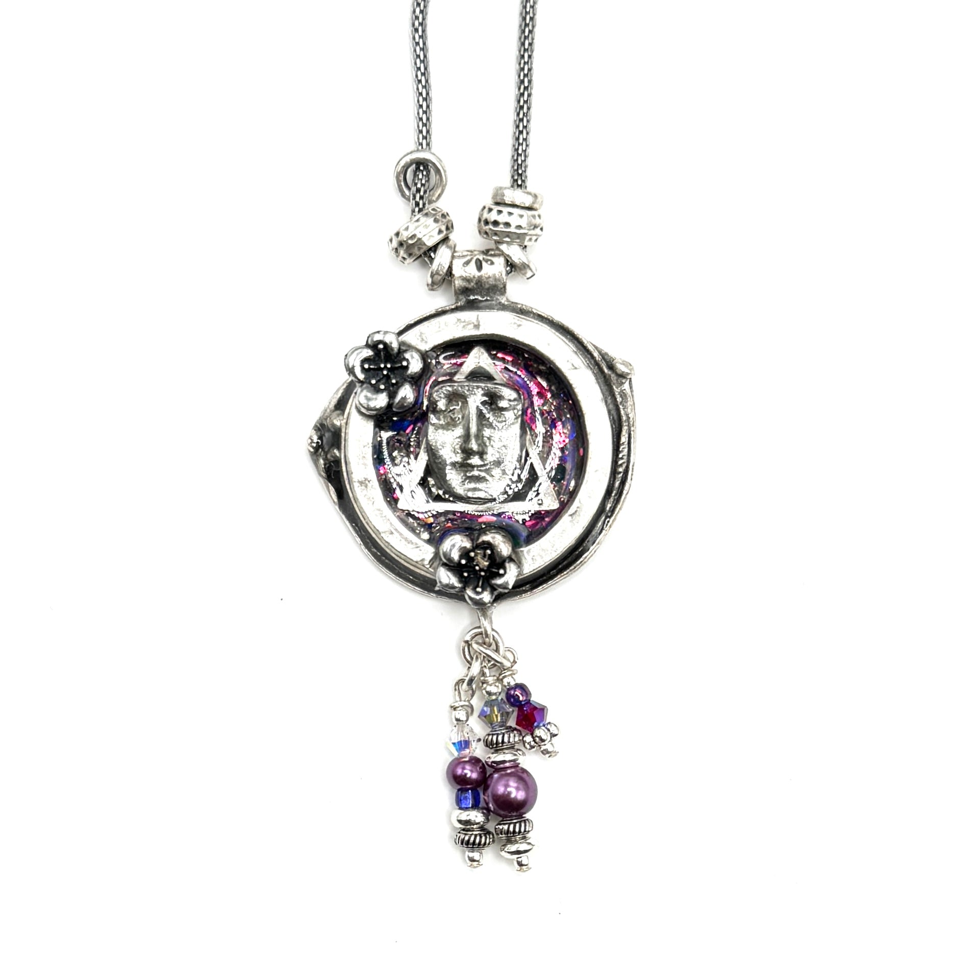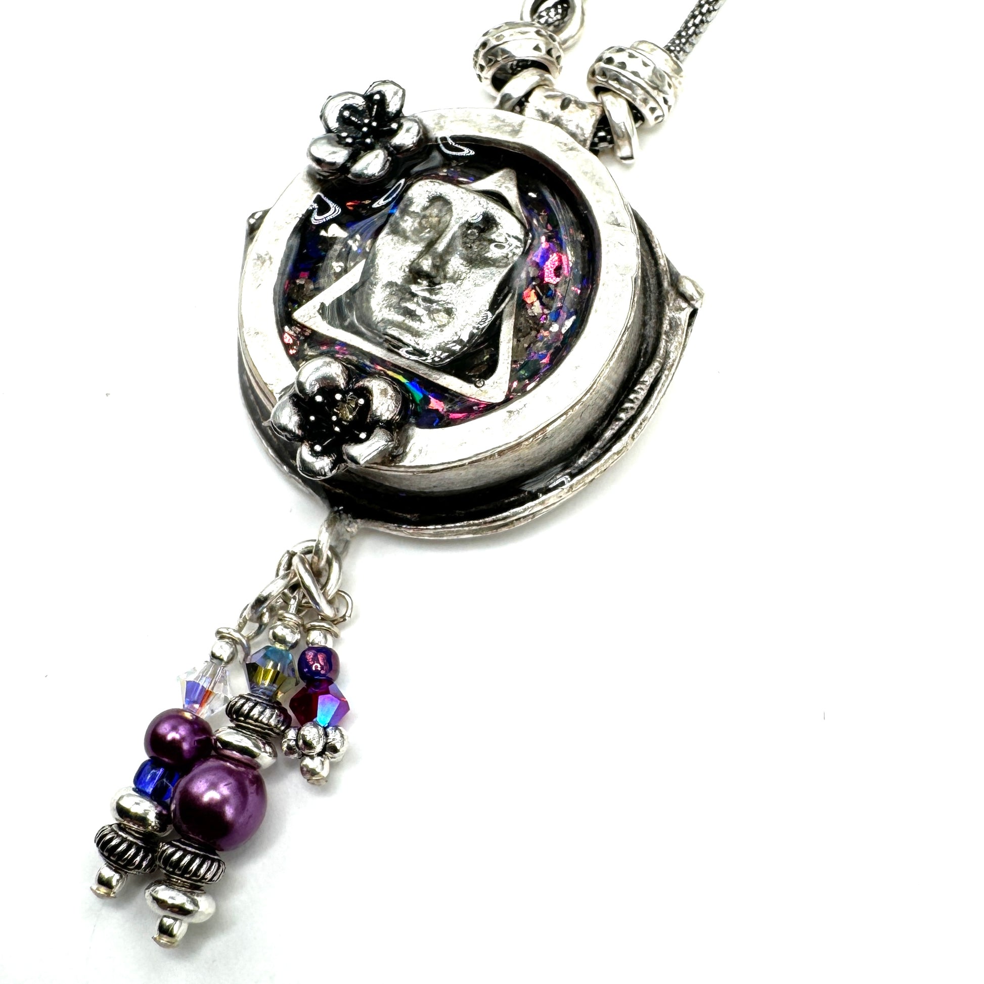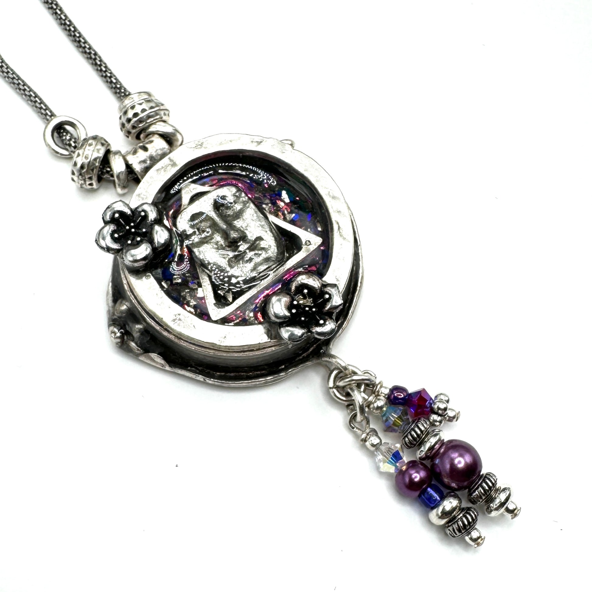 Elevate your style with unique hand-painted resin pendant necklaces! Each piece is a miniature work of art, perfect for expressing your journey in recovery. 18” silver plated chain. Your sure to love this one of a kind pendant necklace by Michelle b