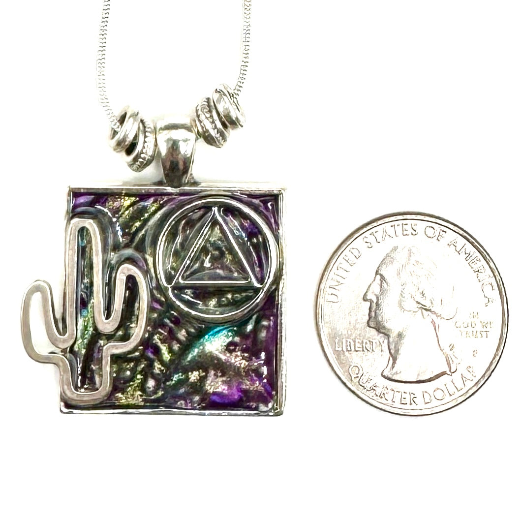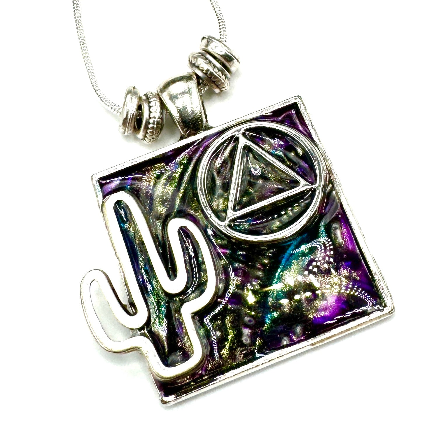 This pendant features a saguaro cactus reminiscent of the desert southwest -Hand painted with crystal clear resin by Michelle b - Silver 925 plated chain and accent beads! This is a One of a Kind Pendant that’s sure to stand out!