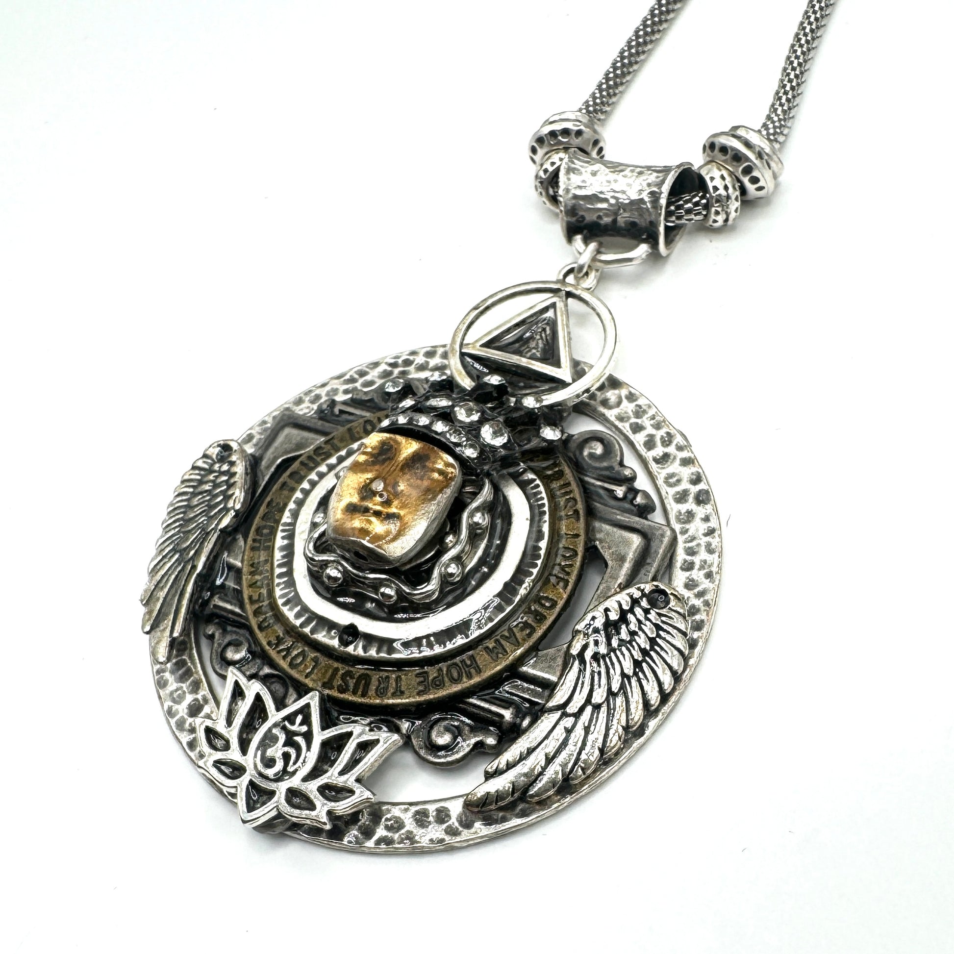 Celebrate the journey of sobriety with the Artful Recovery Sober Pendants by Michelle B. Each pendant is a unique, handcrafted piece of art designed to symbolize personal growth and the commitment to a life of recovery. Made with high-quality materials and infused with intention, these pendants feature inspiring symbols and meaningful designs that resonate with those on their path to recovery. Whether worn as a daily reminder or gifted to a loved one, each pendant serves as a beautiful testament to the courage and hope of embracing a sober life. Discover the art of recovery with Michelle B’s exclusive collection. 18” silver plated chain.