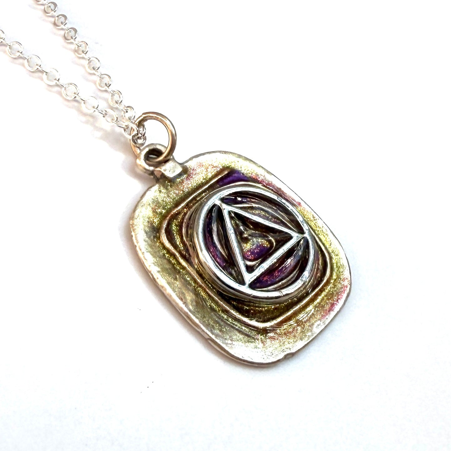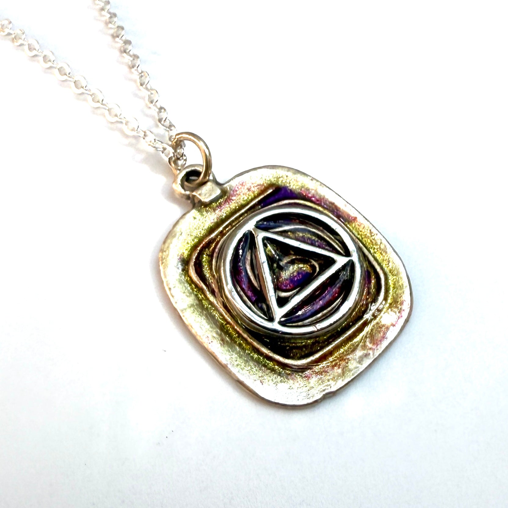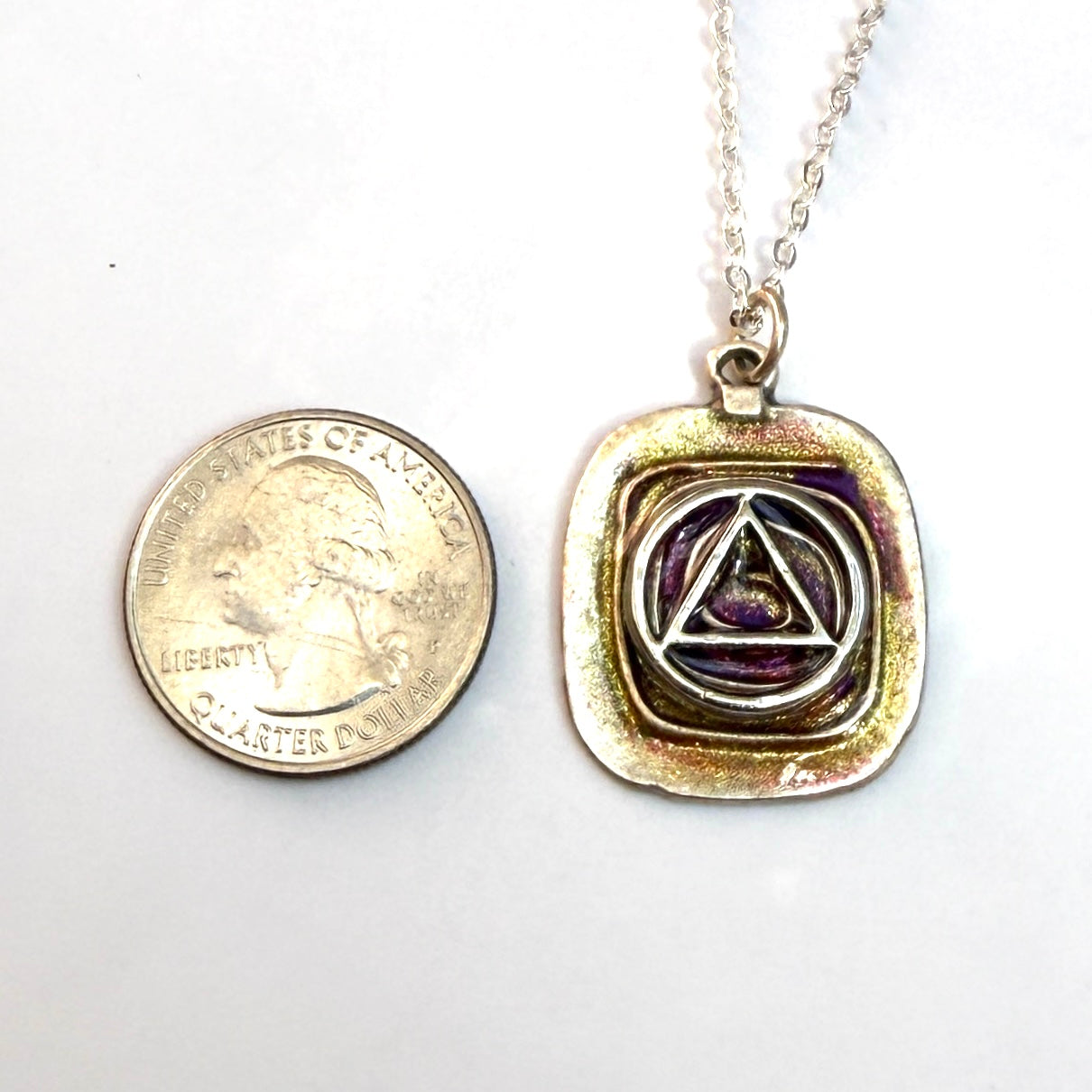 Silver plated 18” chain. This is a One of a Kind Pendant that’s sure to stand out!